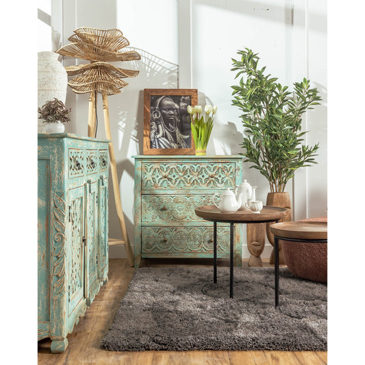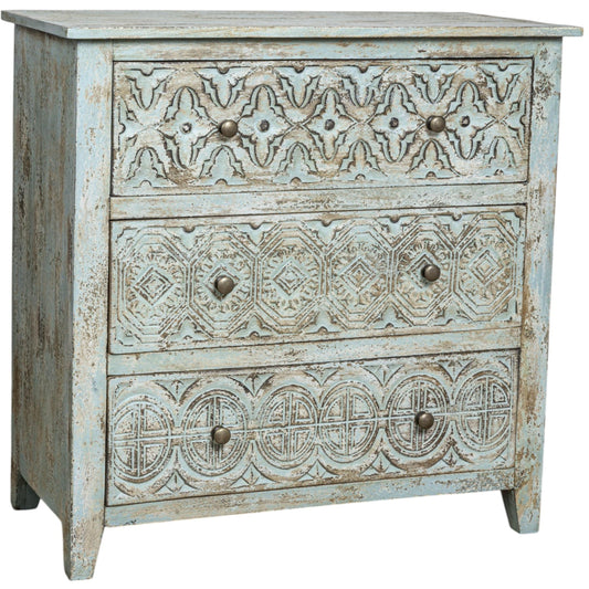Wooden Carved Chest, Three Drawers