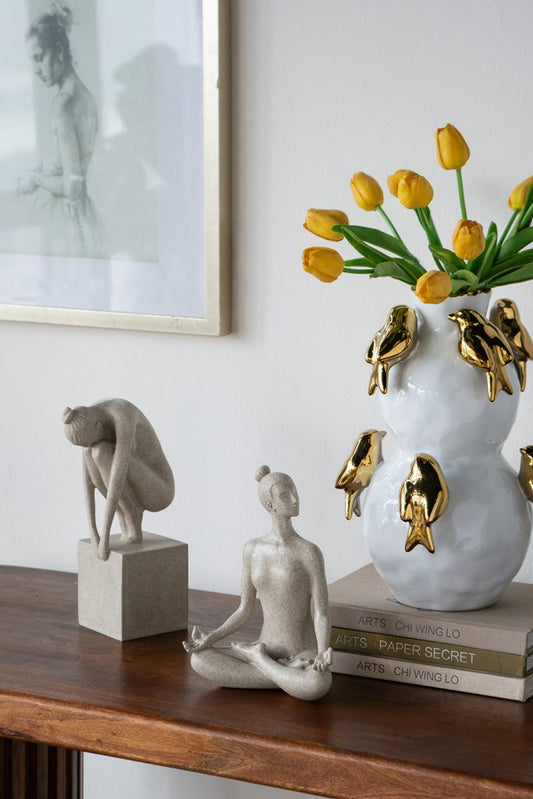 Beige Resin and Stone Yoga Figurine in Cross-Legged Pose