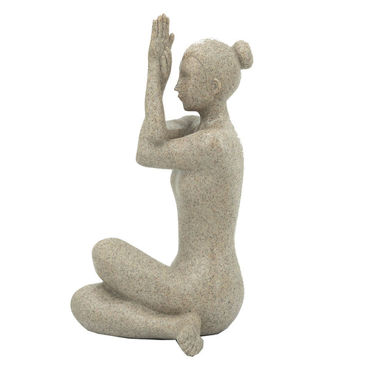 Beige Resin and Stone Yoga Figurine in Anjali Mudra Pose