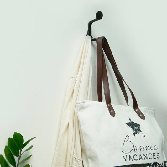 Sturdy and Stylish Wall Hooks, Black & Natural, Wood & Iron