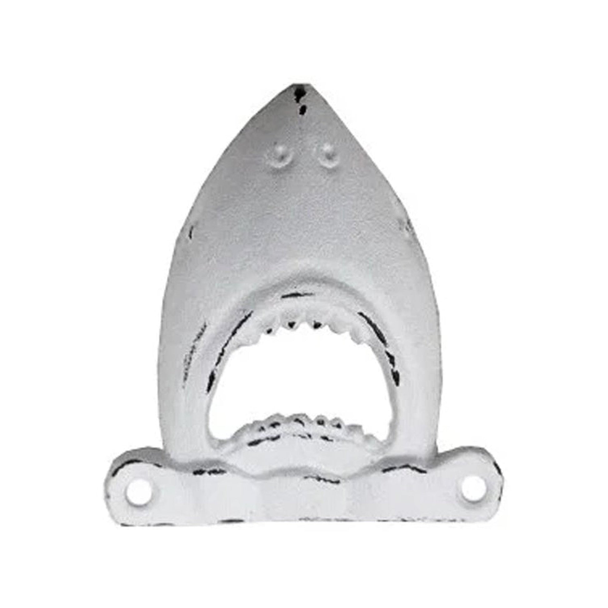 This Cast Iron Shark Bottle Opener is a must-have for any nautical enthusiast. Crafted from robust cast iron with an antique white finish, this opener is built to last. Its 3.3x0.9x3.5 inch size ensures a comfortable grip and reliable performance. Add a touch of maritime style to your kitchen today.