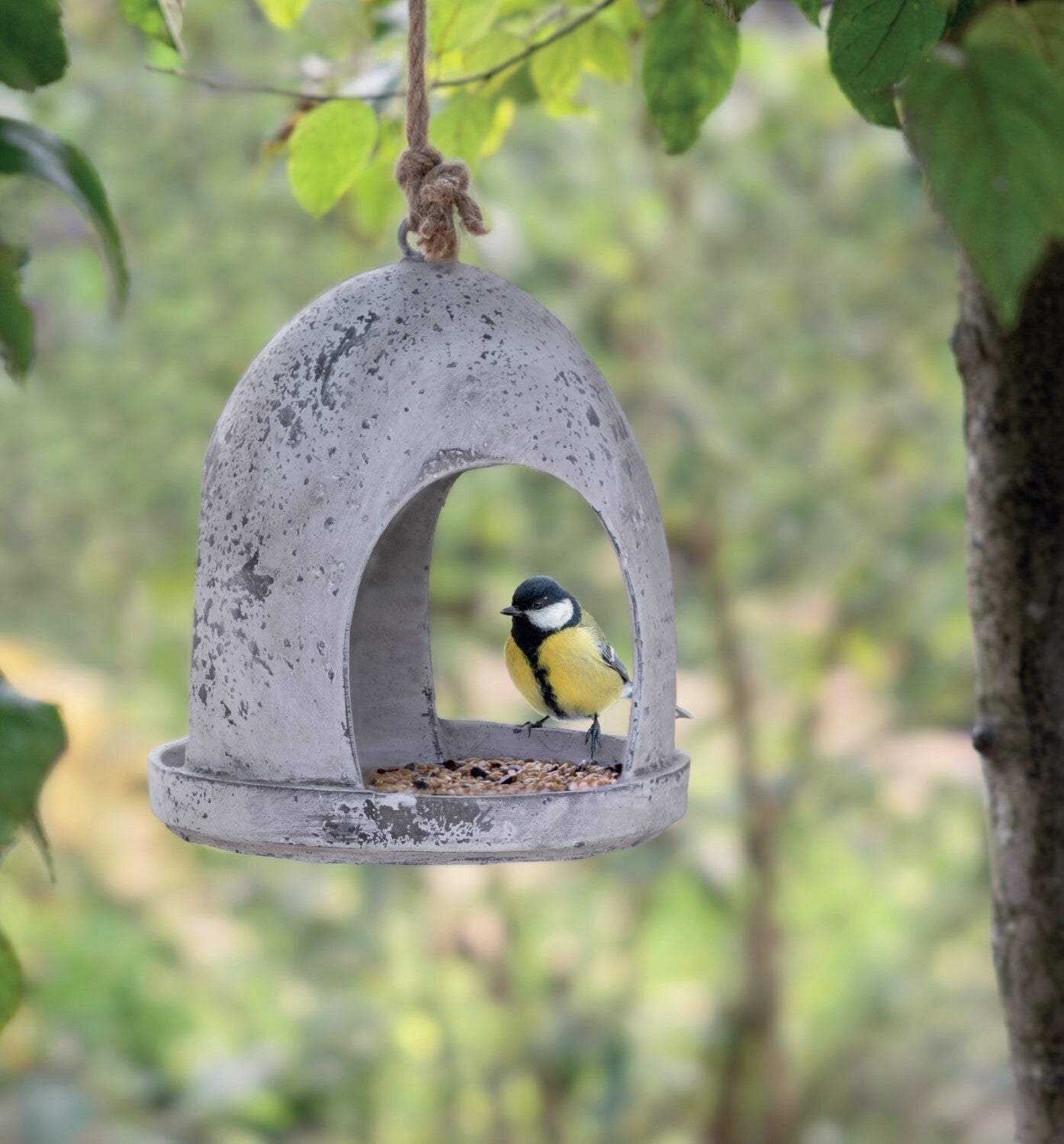 In a garden, bird feed items should not be missing. This weathered bird feeder not only creates a certain atmosphere, but also offers the birds an ideal feeding opportunity. Due to the open structure, the birds can fly in from all sides and thus take a seat on the plateau. Thanks to the supplied jute rope, the bird feeder can be hung anywhere.- made from polyresin- including hanging rope- open structureAged Resin feeder round-