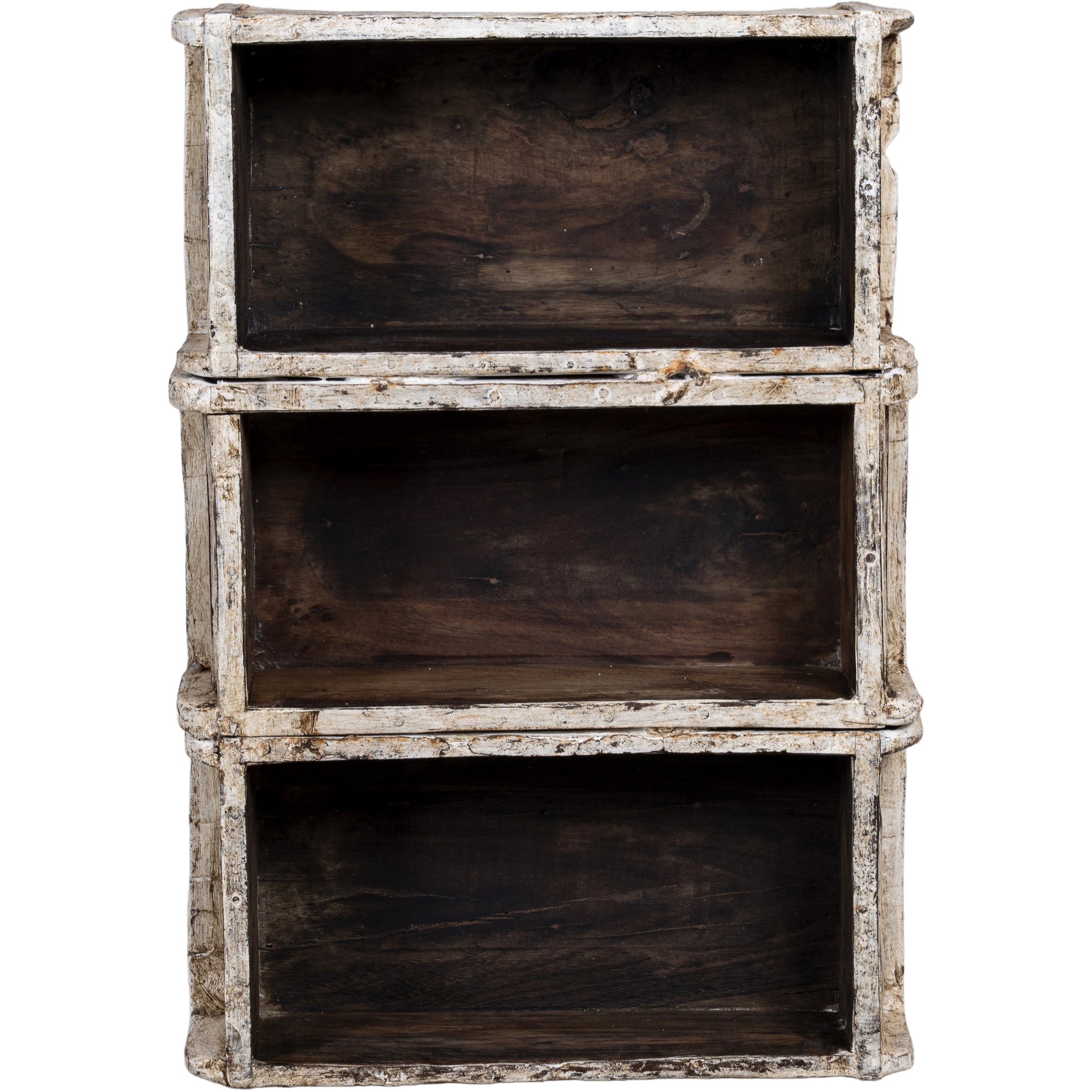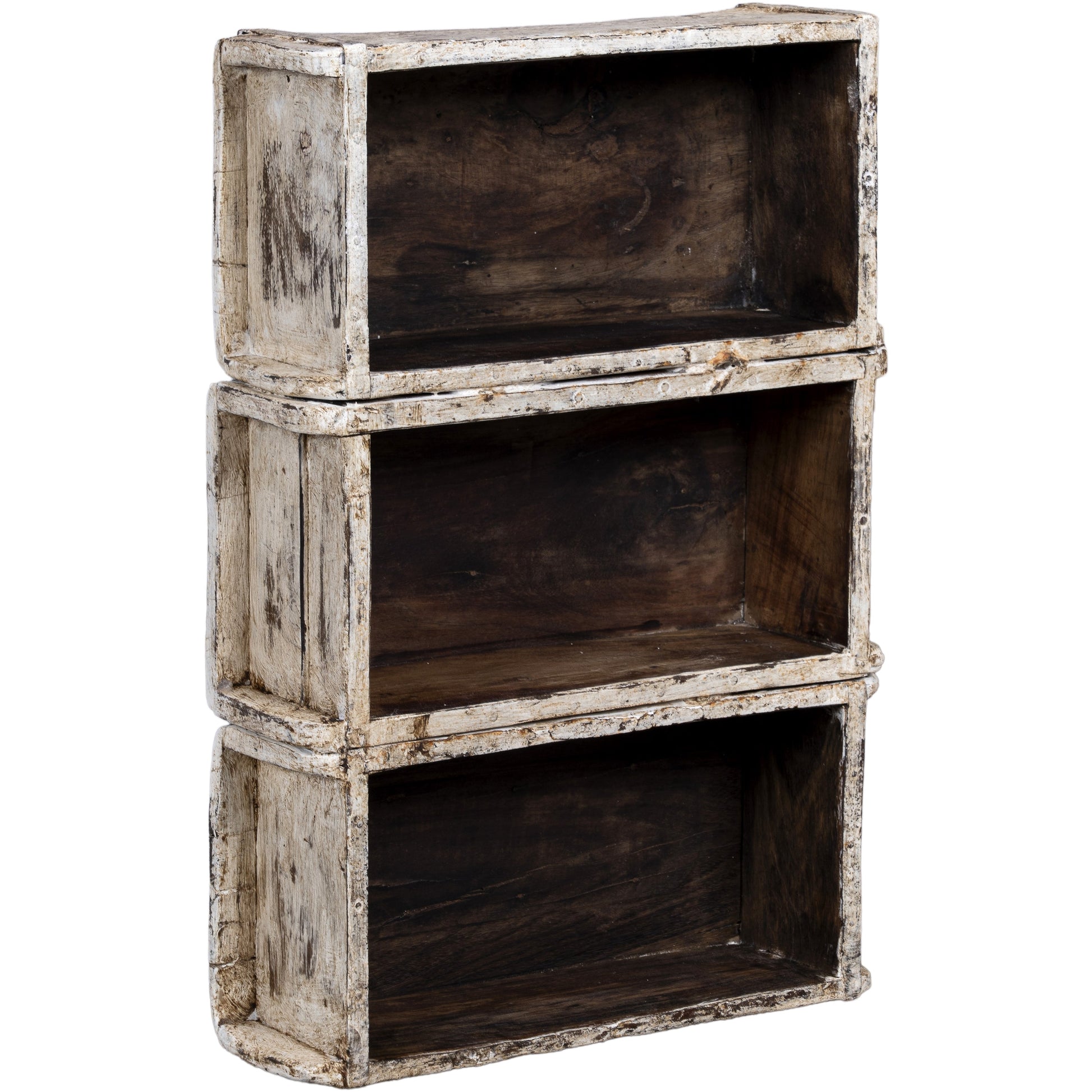 Wooden Brick Mould, Wall Shelf Rack, 3 Tier, White, India