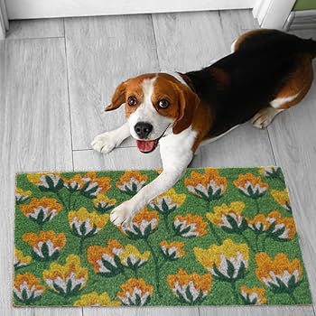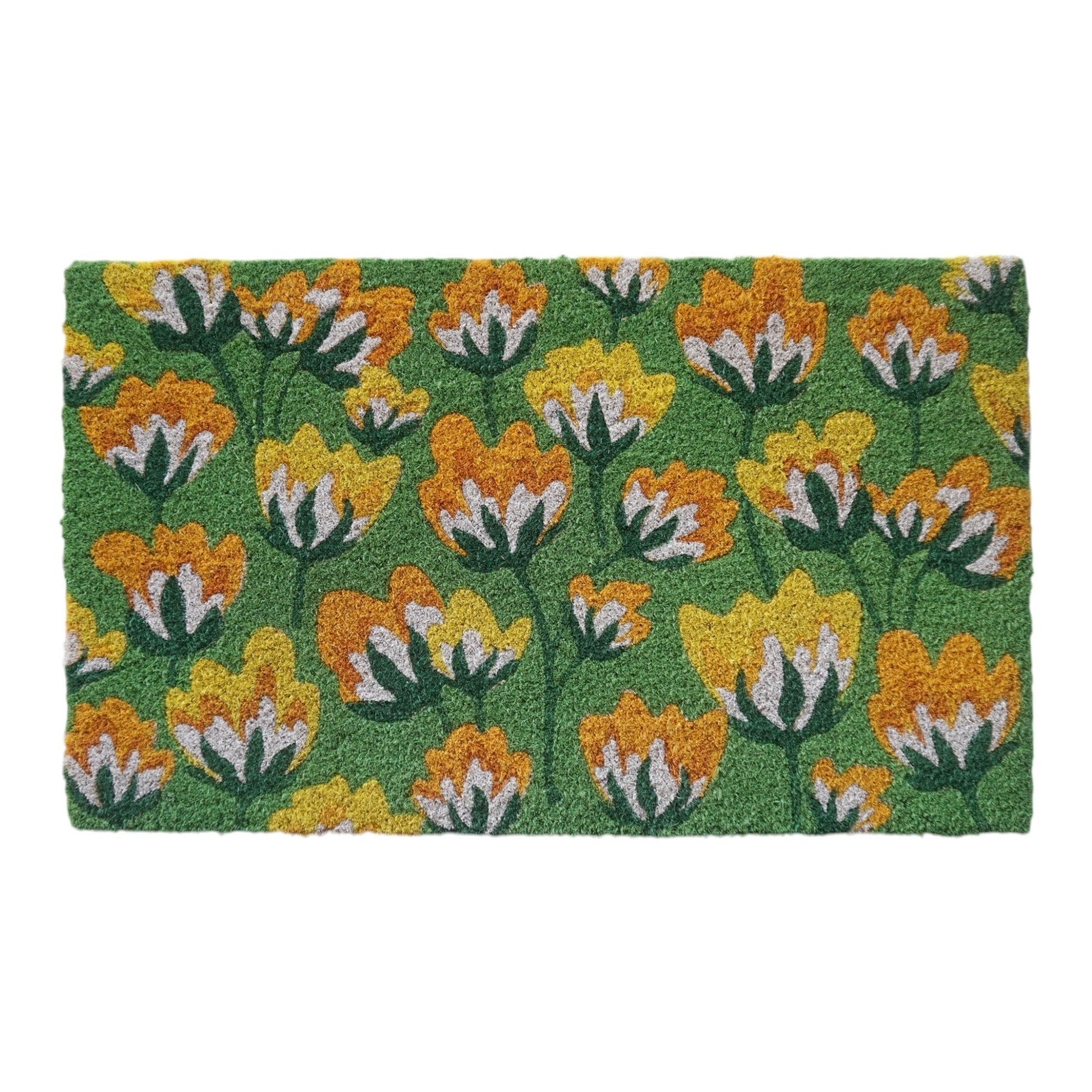 Floral Pattern Coir Doormat, Green, PVC Bleach Mat, India