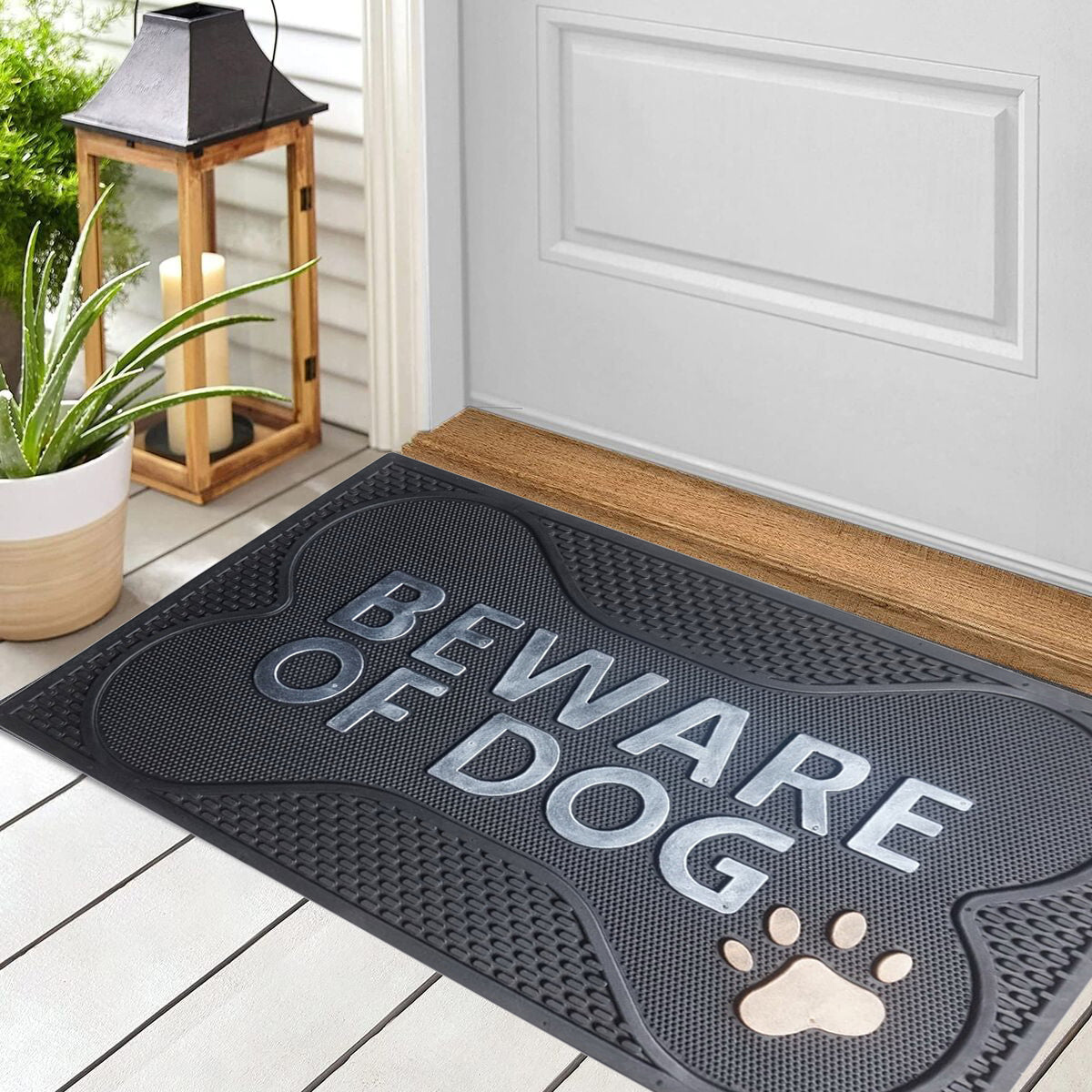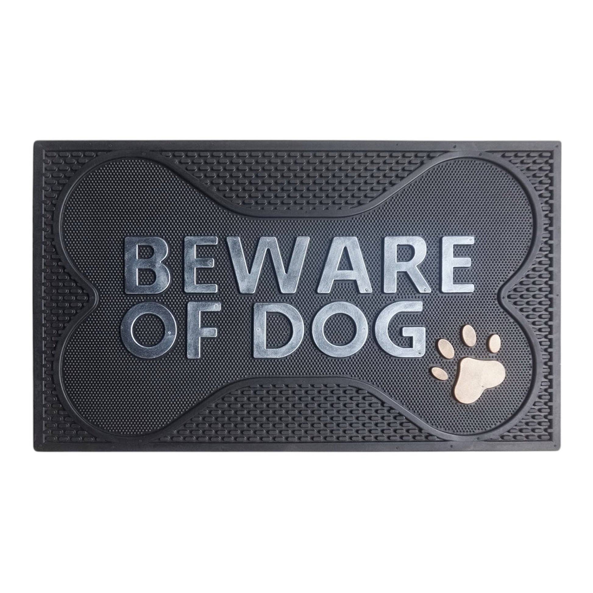 ~BEWARE OF DOG~ Rubber Doormat, Silver & Copper Finish