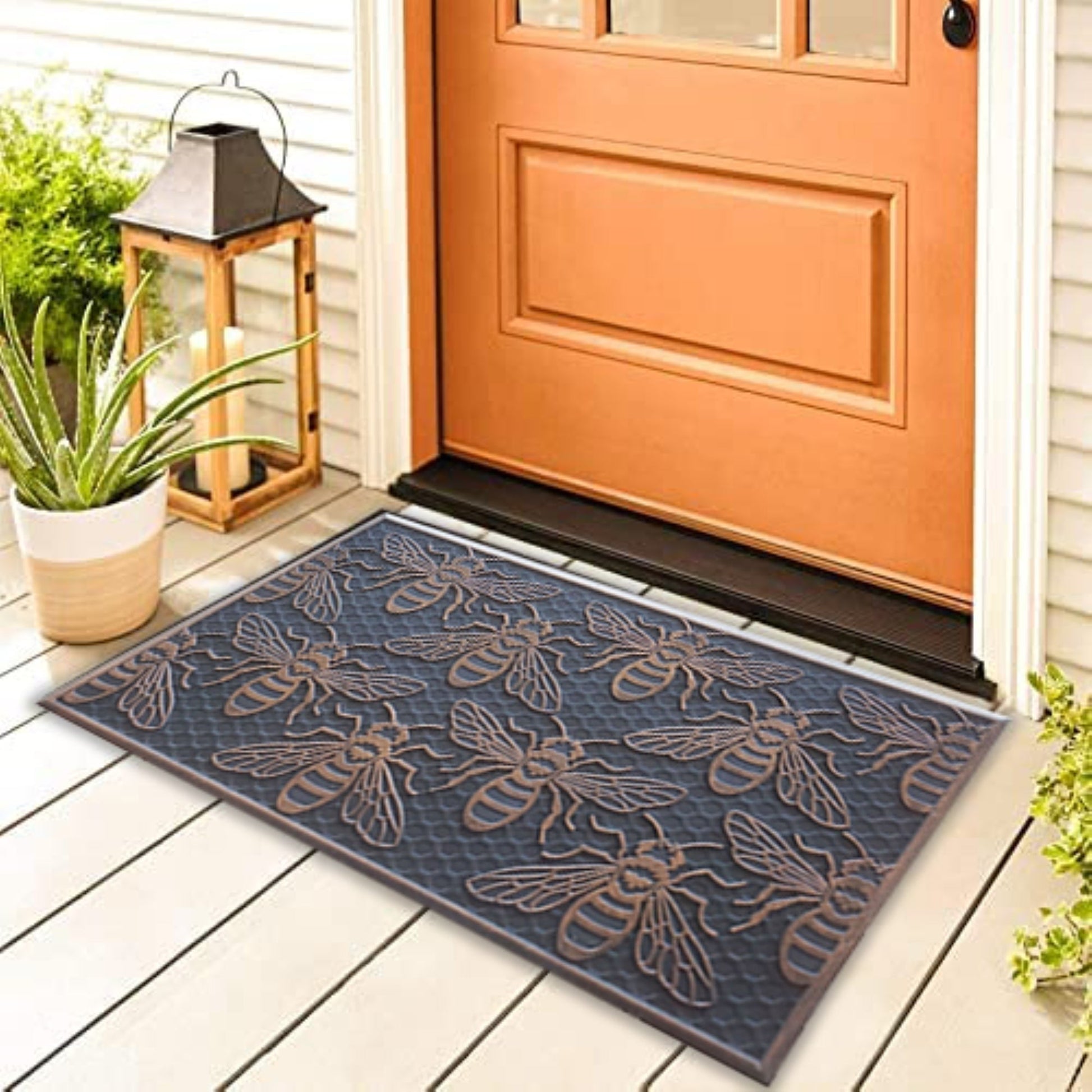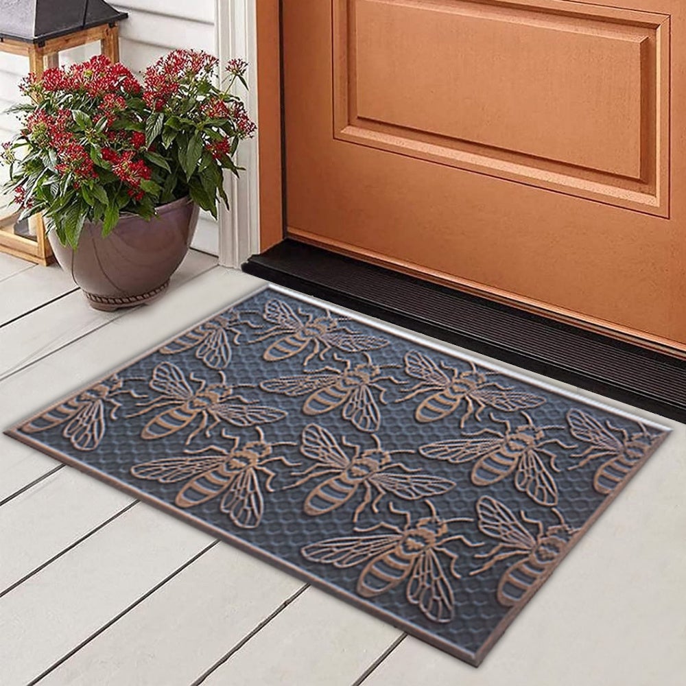 The Bee Rubber Doormat is perfect for adding a touch of style to your entryway. This durable non slip doormat with its copper finish is 18x30 inch, making it easy to wipe away dirt, mud and moisture in one single grab. Add a unique touch to your entryway with this luxurious Bee Rubber Doormat.