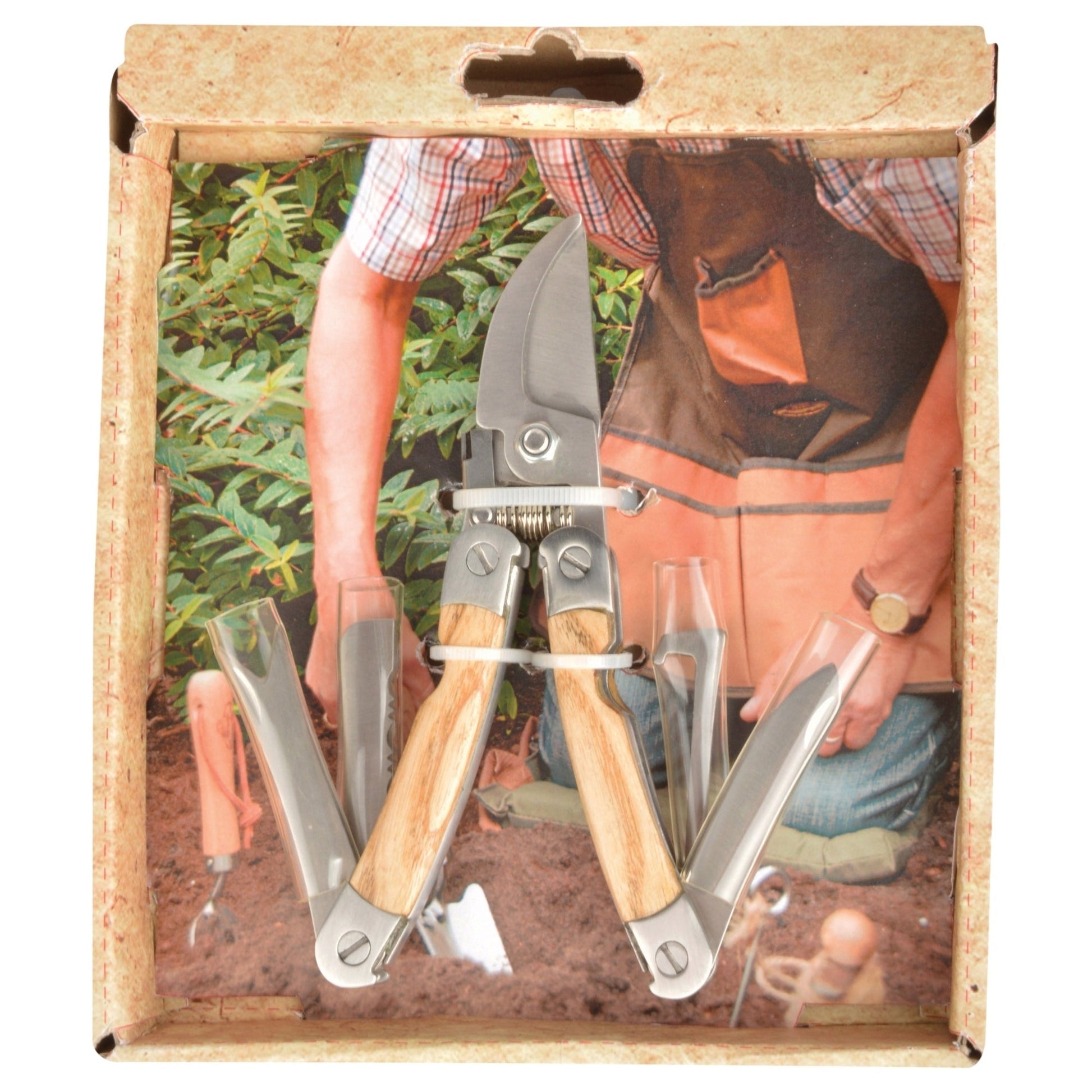 This compact multi-tool can be used for a variety of jobs in and around the garden. It comes with 5 tools, including a hook to remove roots (with blade on the crosscut side), pruning knife, pruning shears with safety, taproot dibber and a wood saw. This multi-tool was made with sturdy stainless steel in combination with European ash wood. Its compact and small size allows you to take it anywhere with ease.- 5-in-1 function (hook to remove roots (with blade on the crosscut side), pruning knife, pruning shears with safety, taproot dibber and a wood saw)- packaged in gift boxStainless steel garden multitool, Stainless steel, ashwood
