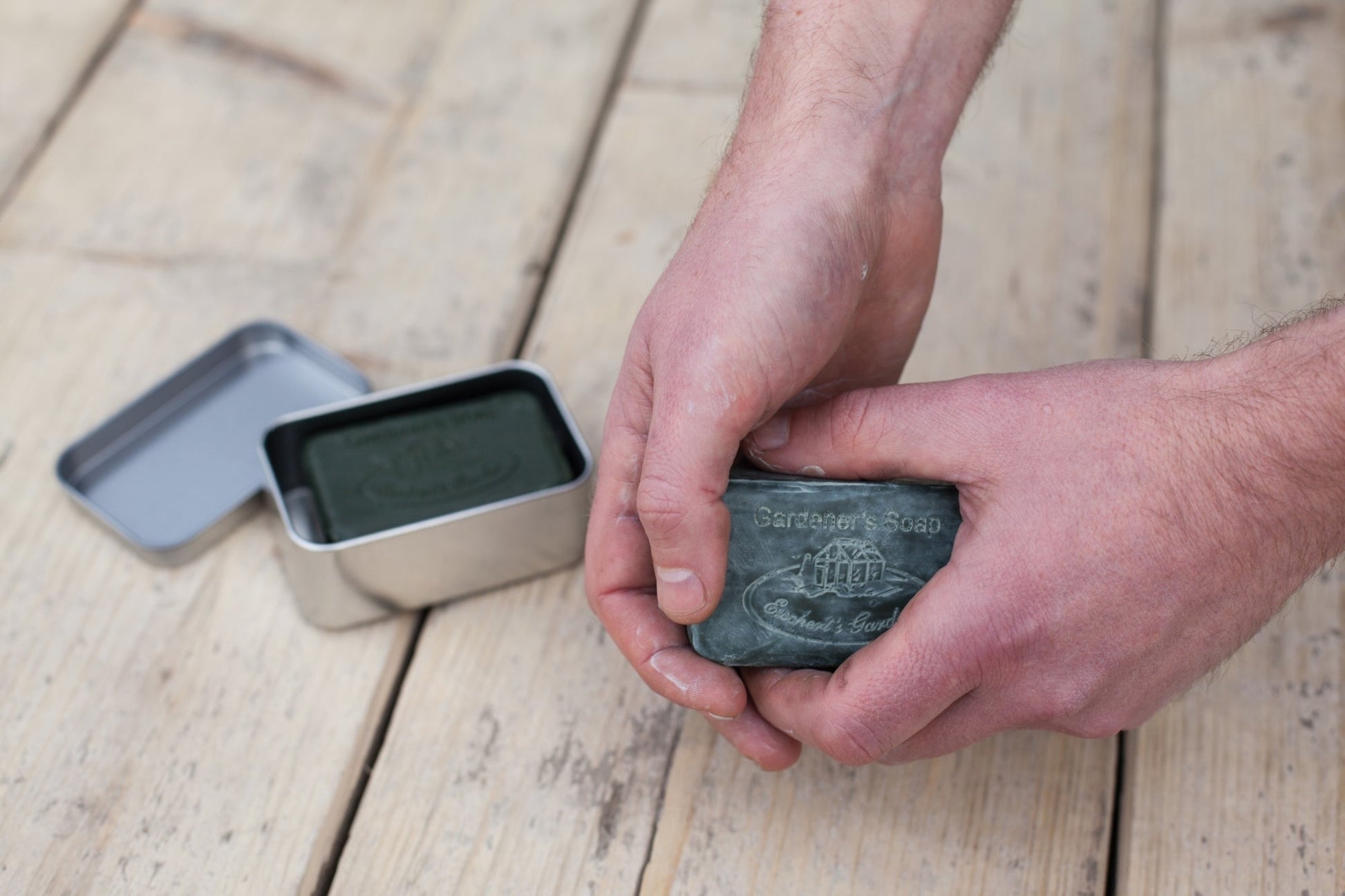 Thoroughly clean your hands after hard word in the garden using this special garden soap. Even stubborn dirt is easy to remove from your hands thanks to the ground pumice. The components such as vegetable oils tend to the skin optimally. On top of that, the soap is cleansing and kills bacteria.- garden soap with pumice- packaged in metal tin- packaged in table displayGardeners soap in tin, Natural coconut oil, Palm kernel oil, Spicery, Pumice stone, Glycerine and Tetrasodium EDTA (EDTA