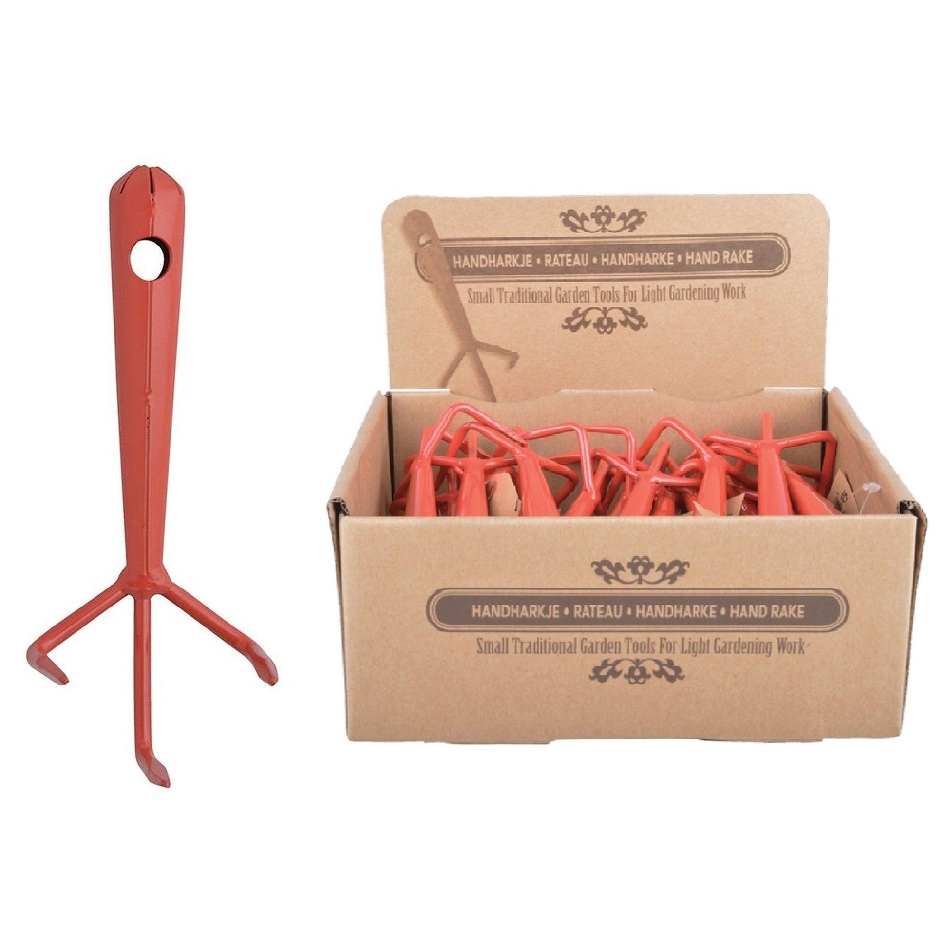 Traditional garden tools for anyone with a green thumb. The durable choice in material means they will last a long time. This hand rake can be used to even out a small surface, gather plant litter and the likes or to break and plough the soil. Due to its size it is also suited for indoor gardening.- suspension option with the hole in the handle- packaged in table displayFork S, Steel