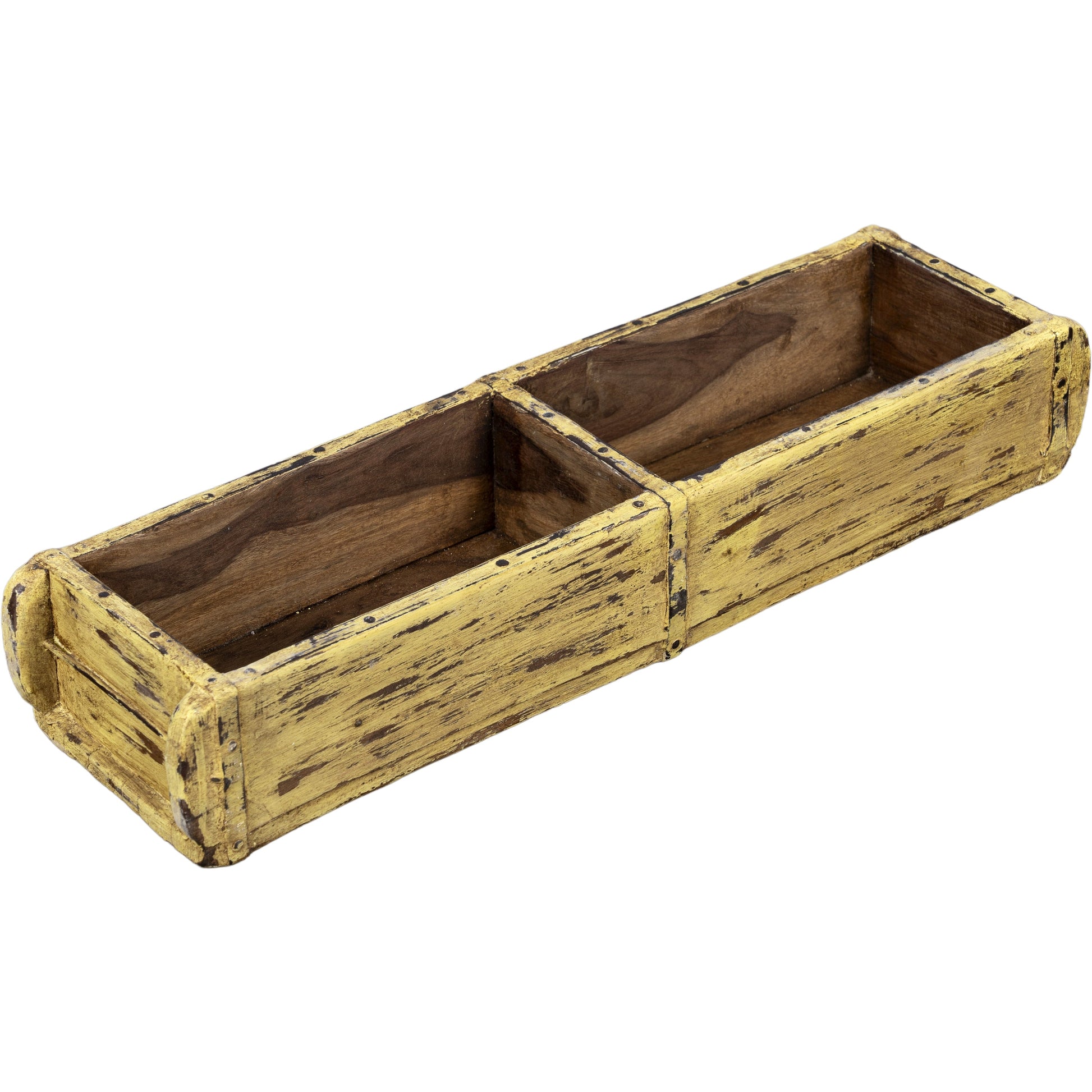 Wooden Brick Mold Dbl Tray, Brown/Mustard, India