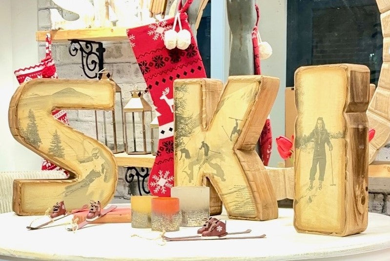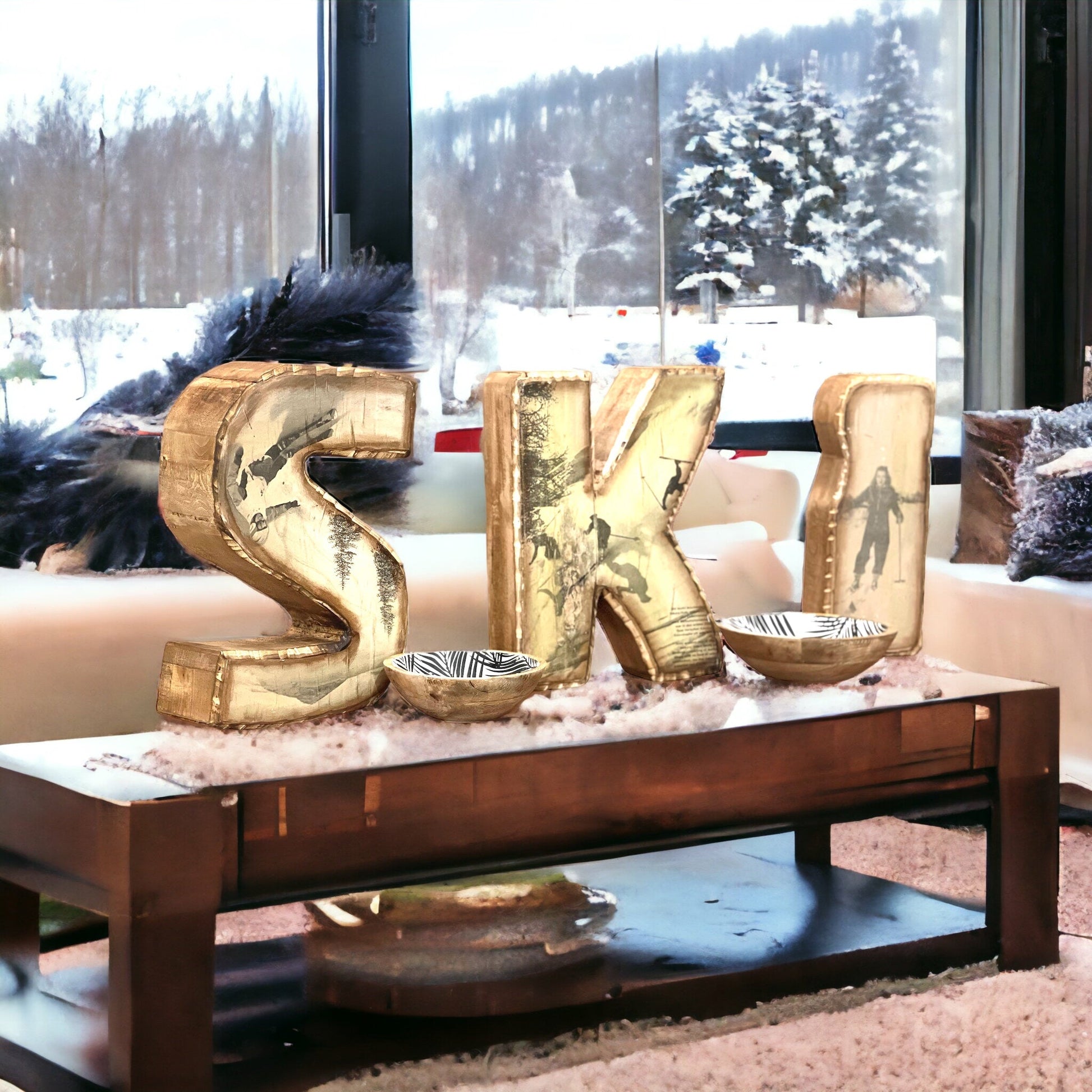 Classic Table and Wall SKI Decor Set, 15.4 in