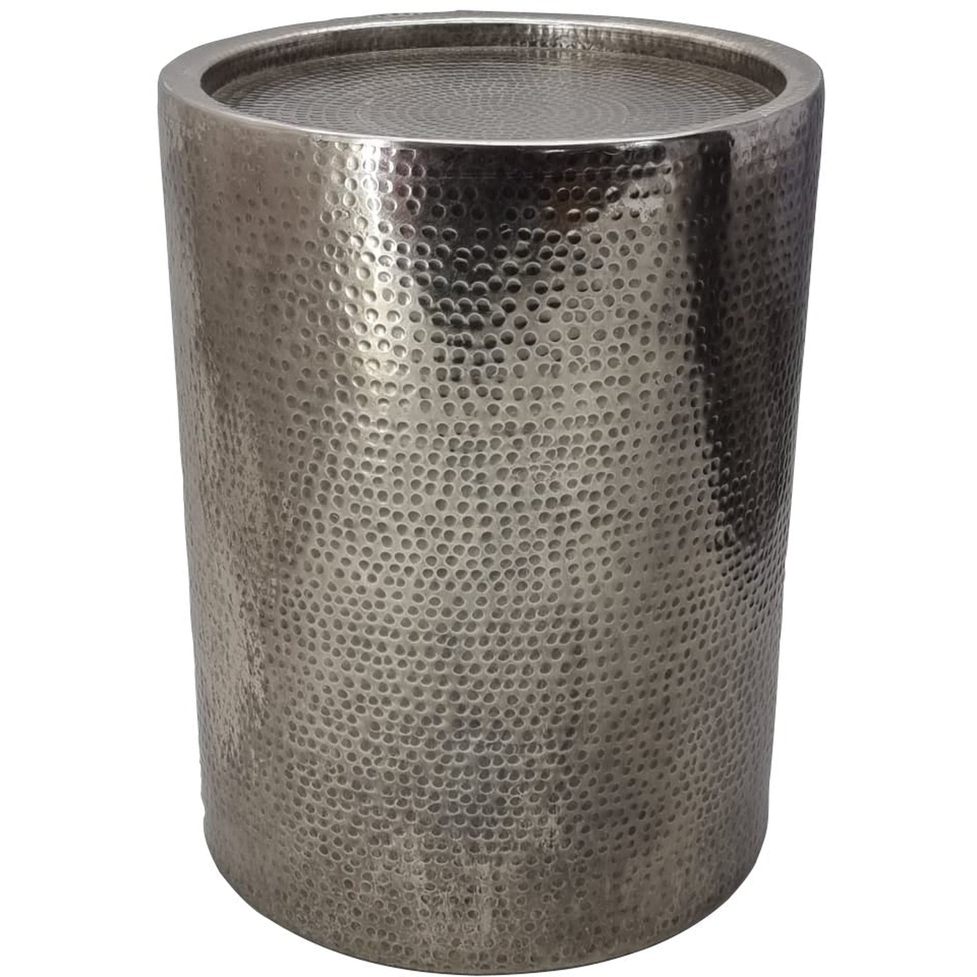 Sigurd Hammered Drum End Table, Antique Sliver, Large, Aluminium, India