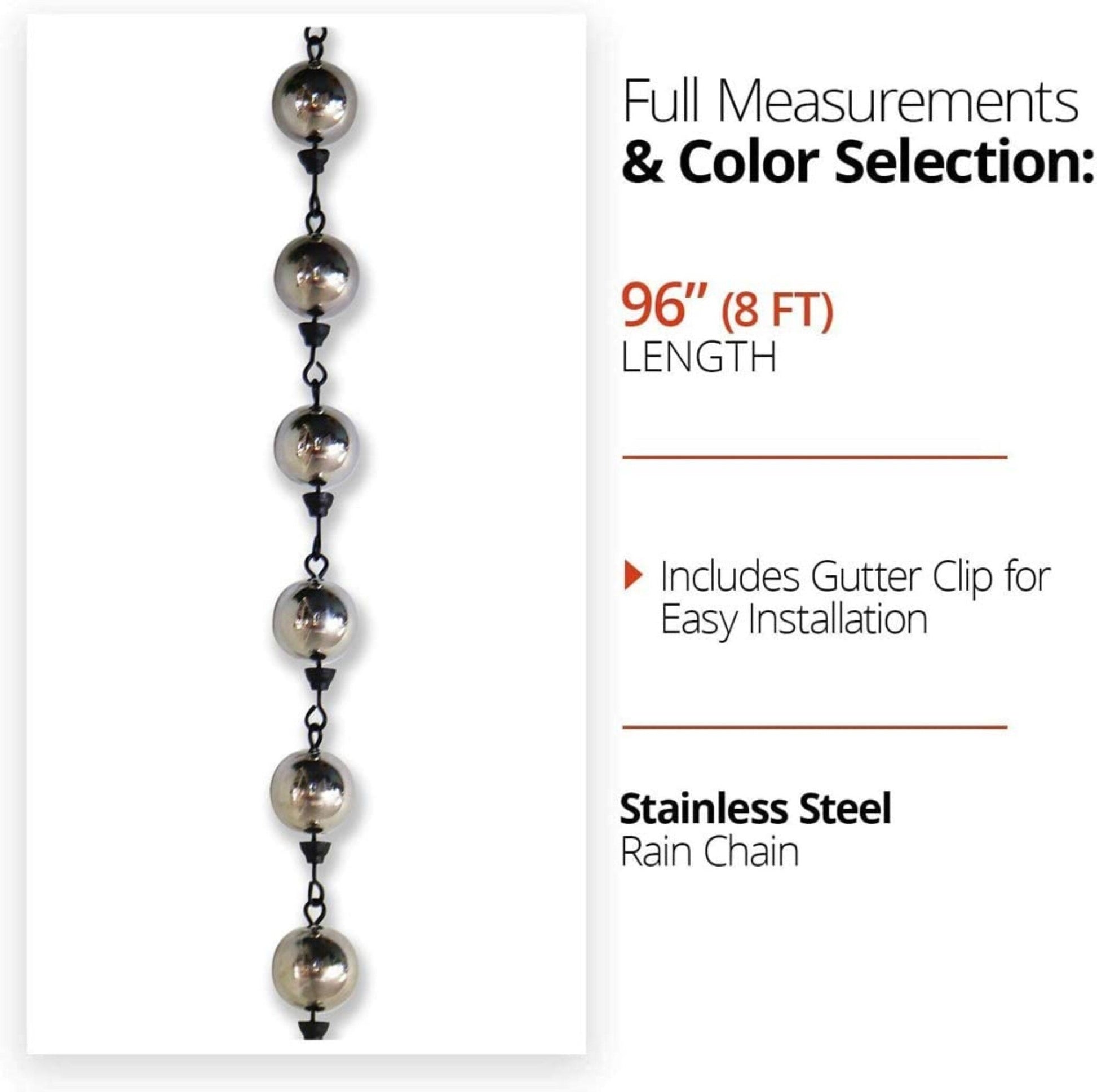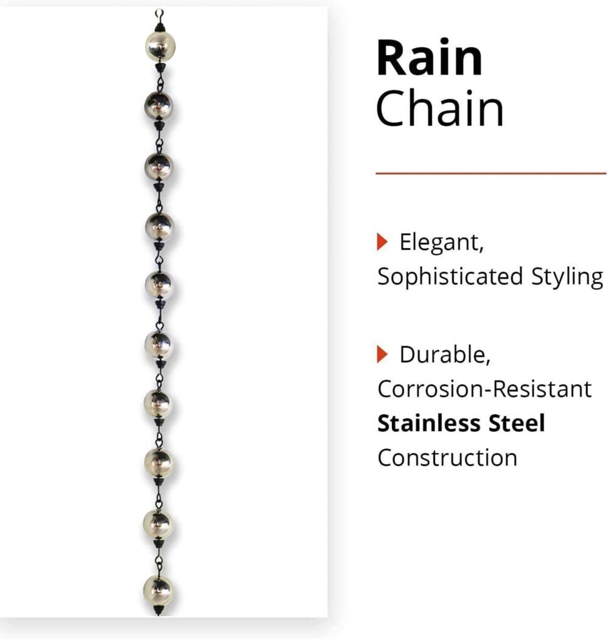 This durable stainless steel rain chain is the perfect addition to your outdoor gutter system. It adds a decorative touch while transforming the gentle sound of rain into a soothing, melodic experience. With a 96 inch design, this rain chain seamlessly directs water away from the roof.
