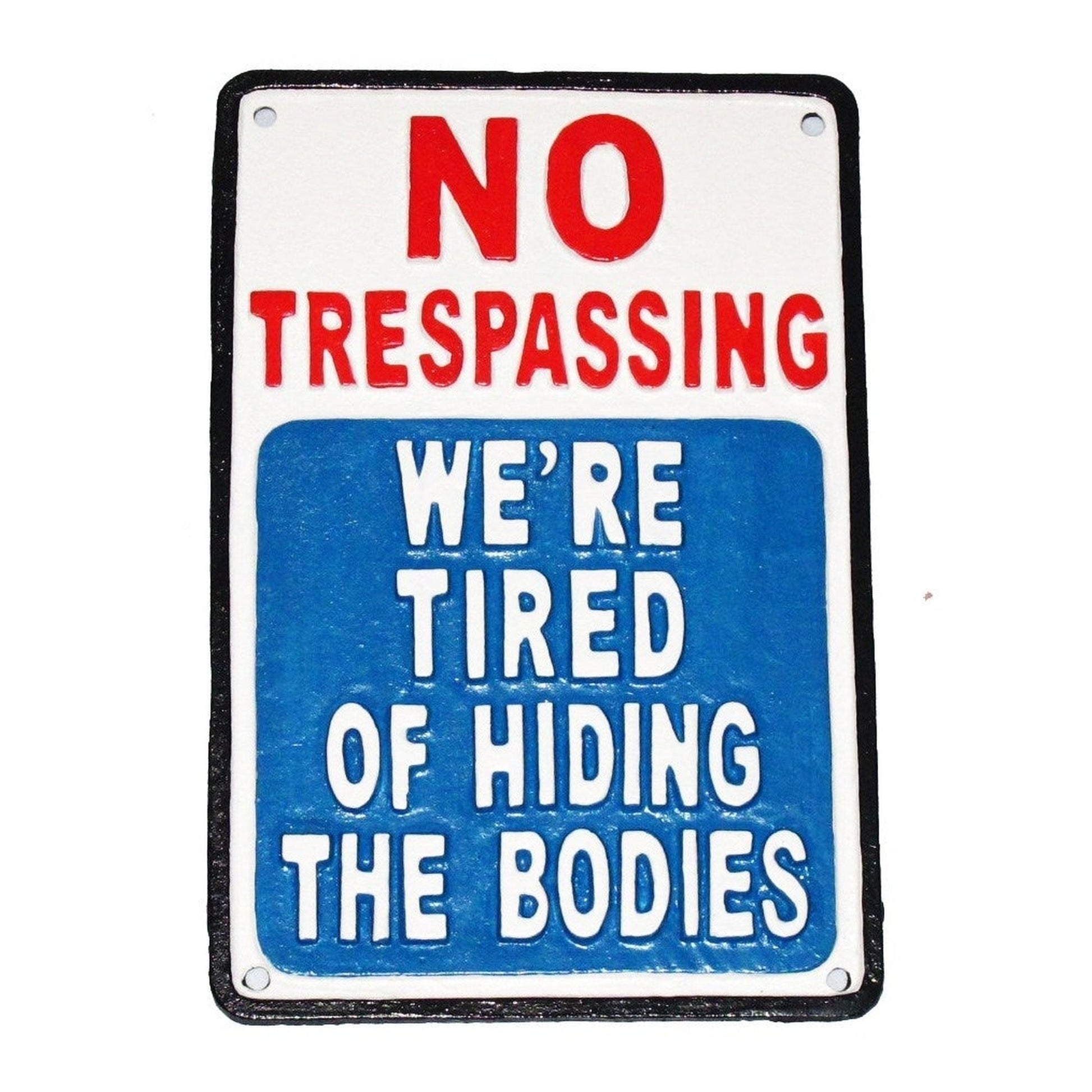 No Trespassing/Tired of Hiding Bodies Plaque, 9.2x6.2x1 inches