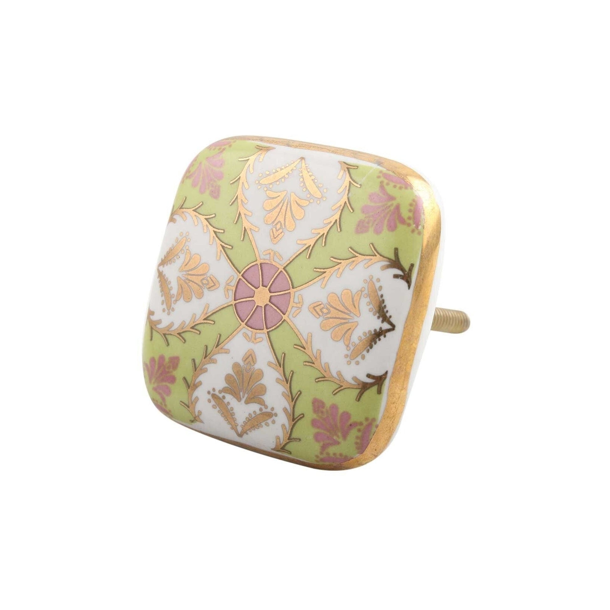 These handmade ceramic knobs add a unique look to any furniture or cabinetry, with colors like lime, gold, pink, and white. Each knob has a dimension of 1.75x1.75x0.7in with a bolt of 1.5in, making them the perfect fit for any door or drawer. Add a stylish pop of color with these easy-to-install knobs.
