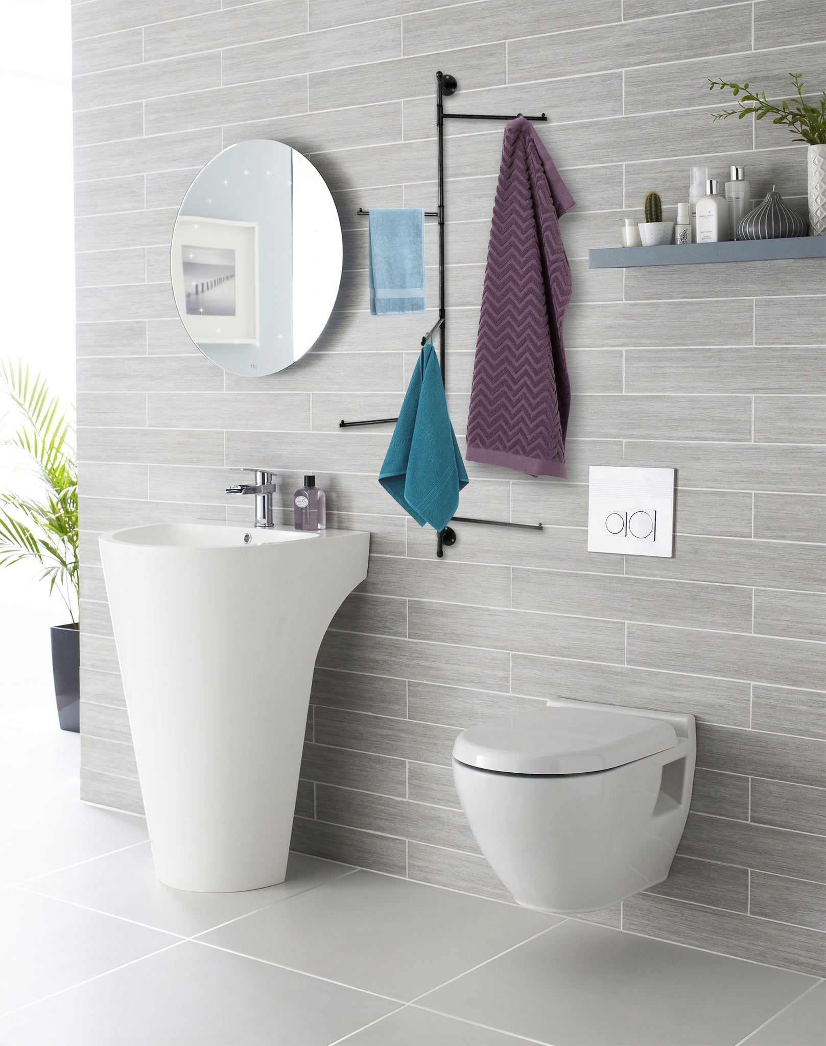 5 Arm Iron Towel Rack Med, Black.
