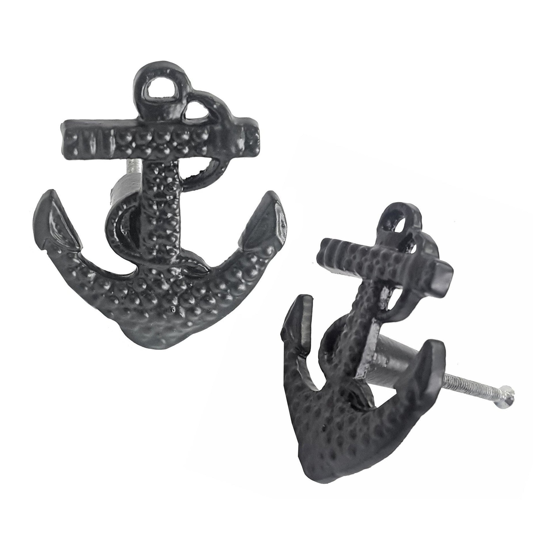 Featuring a classic anchor design, this 2.5x2x1 inch door knob adds an elegant nautical touch to your cabinets and furniture. The black finish provides a stylish, timeless look that will complement any décor. Add a touch of the ocean to your home with this classic Anchor Door Pull Knob.