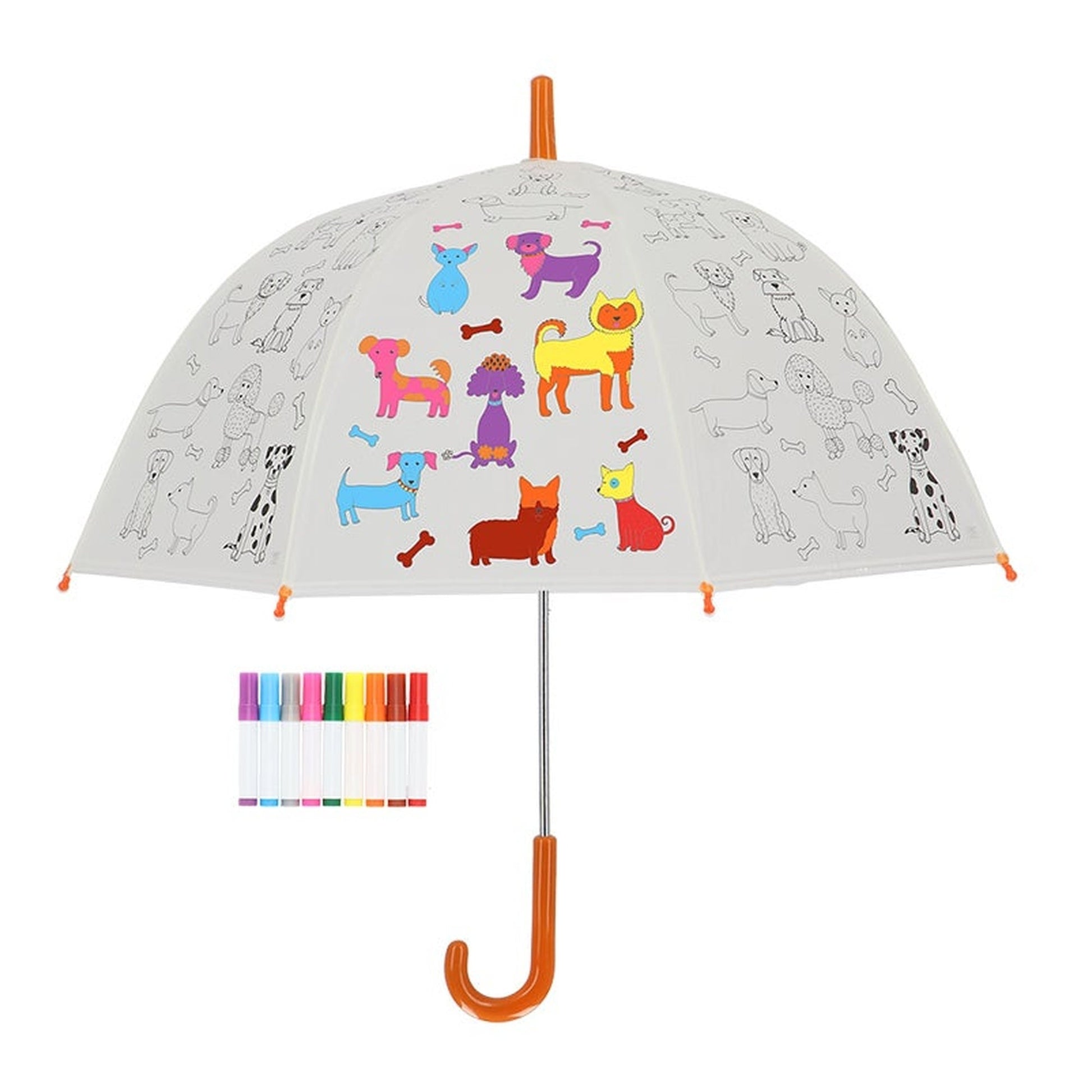 Make going out for a walk in the rain a joy! Colour in this 'Paint it Yourself' umbrella decorated with dogs any way you want! The umbrella comes with markers that can be used to colour in the umbrella. Let children be creative. Its size and use are especially created for children's hands. - CE certified- suitable for 3 years and upColour In Umbrella Dogs, EVA, Fiberglass, Steel, PP, ABS, China