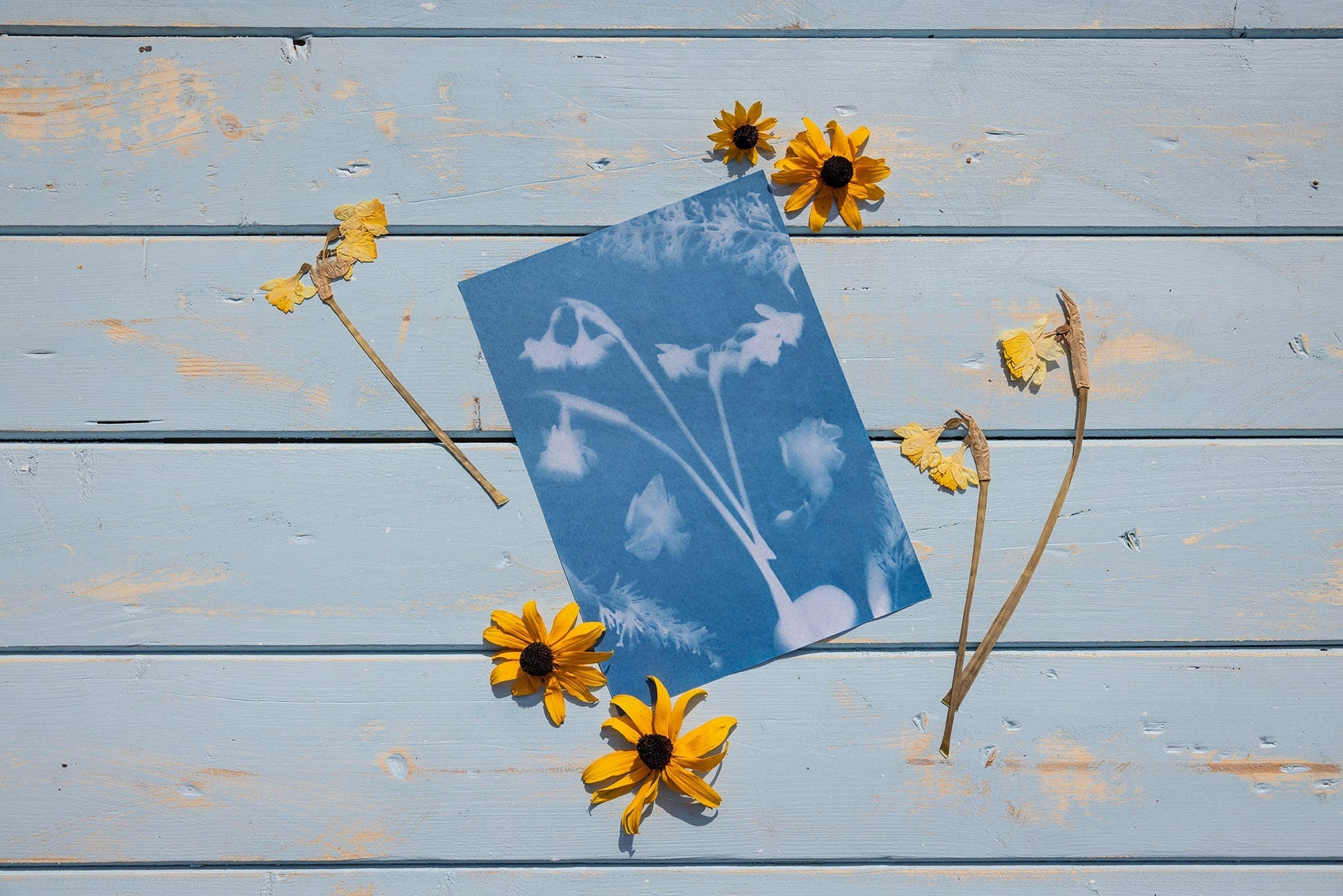 Use the power of the sun, capture its shadows and make unique creations with this solar photo paper. How does it work? Place a sheet of paper on a flat surface and arrange beautiful objects, such as flowers or feathers on it. Place the paper in the sun for 3 to 10 minutes then remove your objects from the paper. The shadows that blocked the sun will turn white, creating a negative image of your composition. Rinse the paper under the tap for 2 minutes and then hang the paper up to dry. The blue colour will darken after a while. - UV light-sensitive paper, to be exposed to the sun- recycled paper - develop and fix with tap water- no darkroom needed - non-toxicSolar Photo Paper A5 Set/12, Solar Photo Paper, China