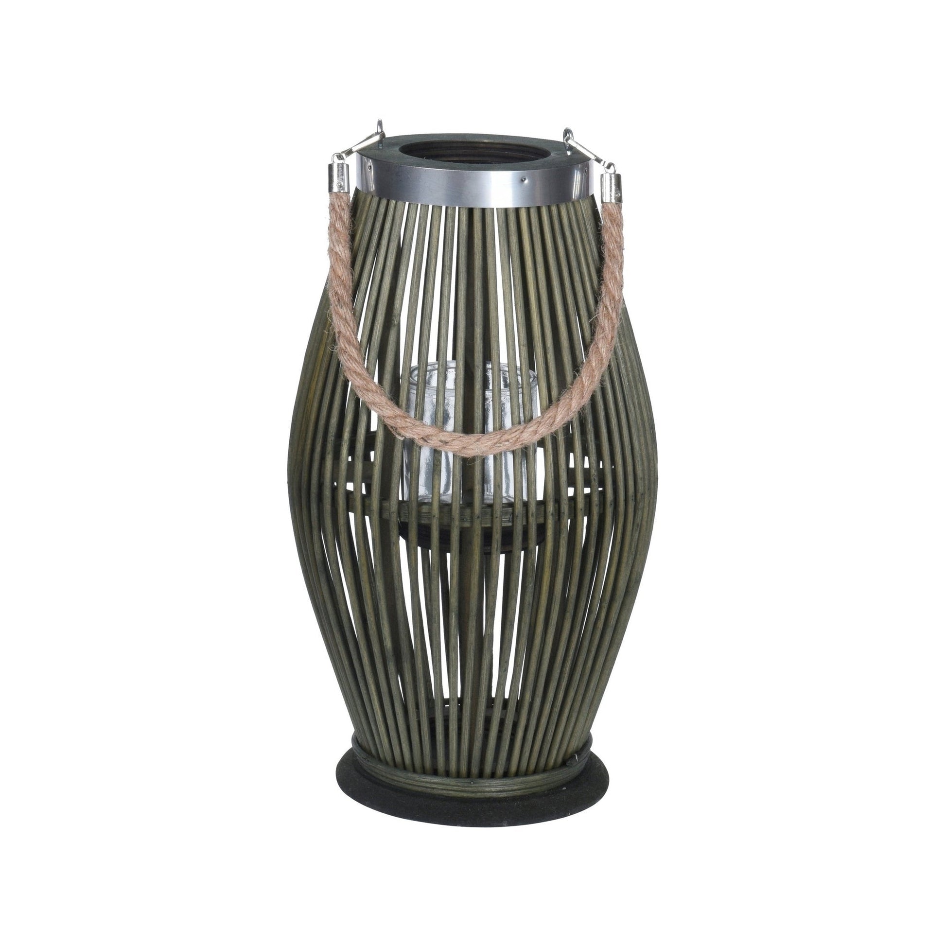 435000360 Lantern Bamboo, Green With Washed Rope, China, 8.3X8.3X15In, Last Chance, On Sale 30% Off
