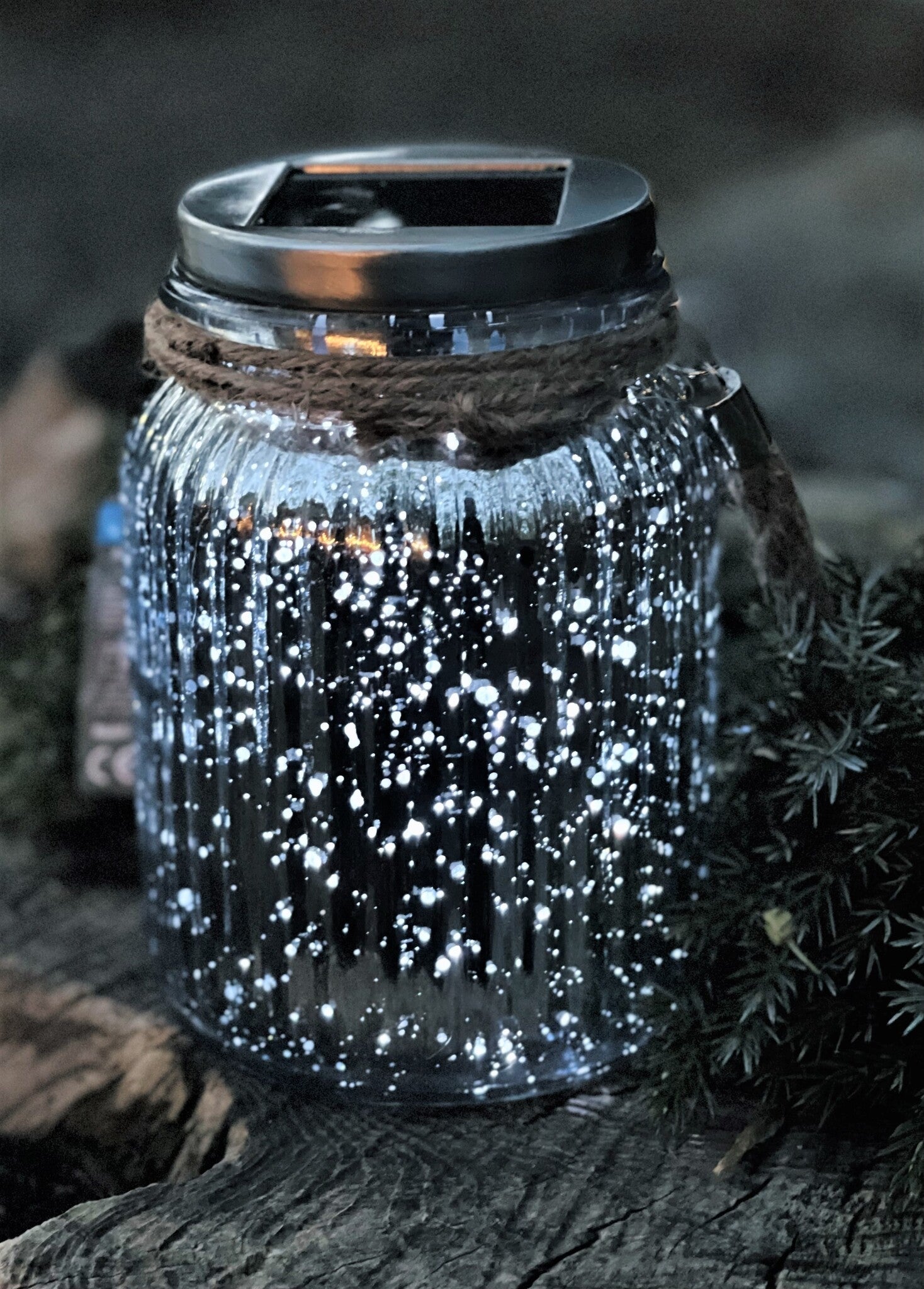 This Garden Solar Light With Rope features a glass with rope hanger, and 15 cool white micro LED lights. Its modern yet classic design is 4.2x4.2x6.2 inches for enhanced solar efficiency. Enjoy classic, energy-efficient outdoor lighting with this solar powered garden light.