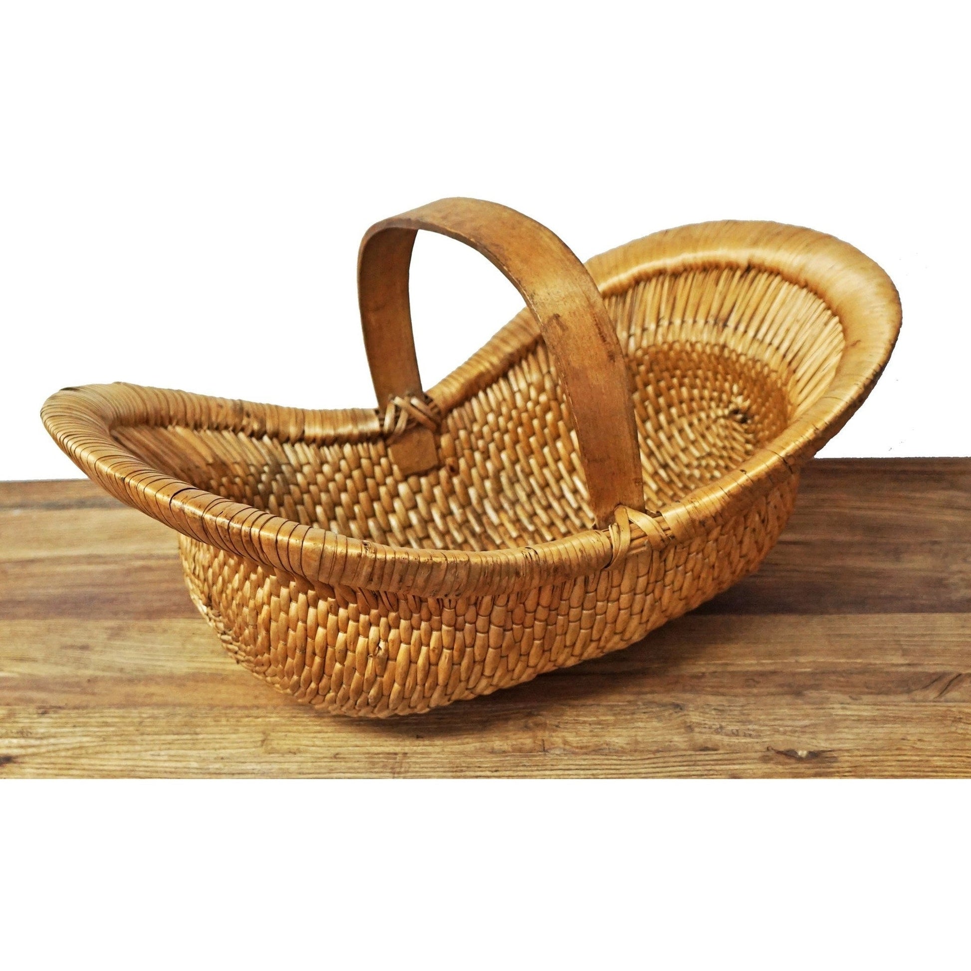 Antique Willow Basket w handle, oval. 14x6x10inch appx.
