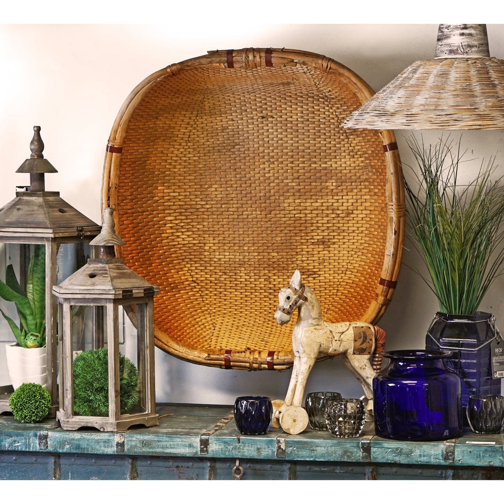 Square Antique Willow Basket, 37x37x8.7 Inches
