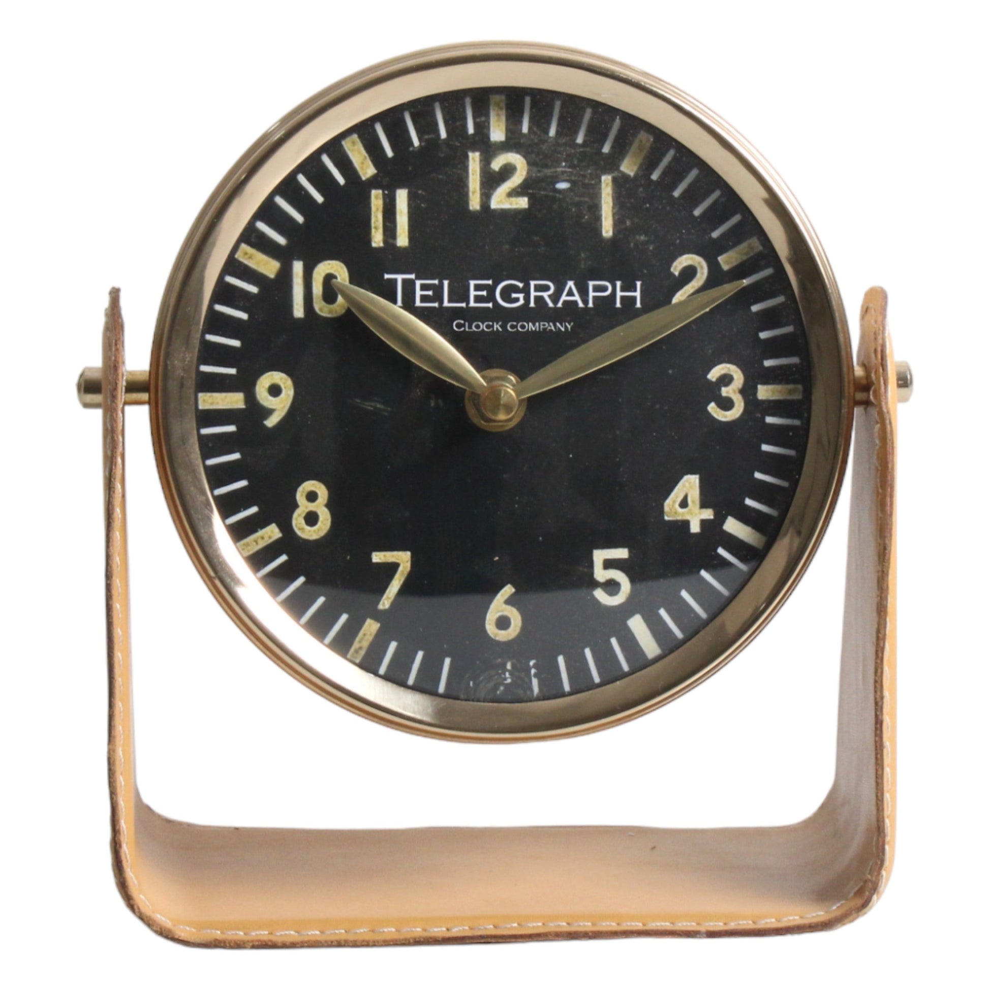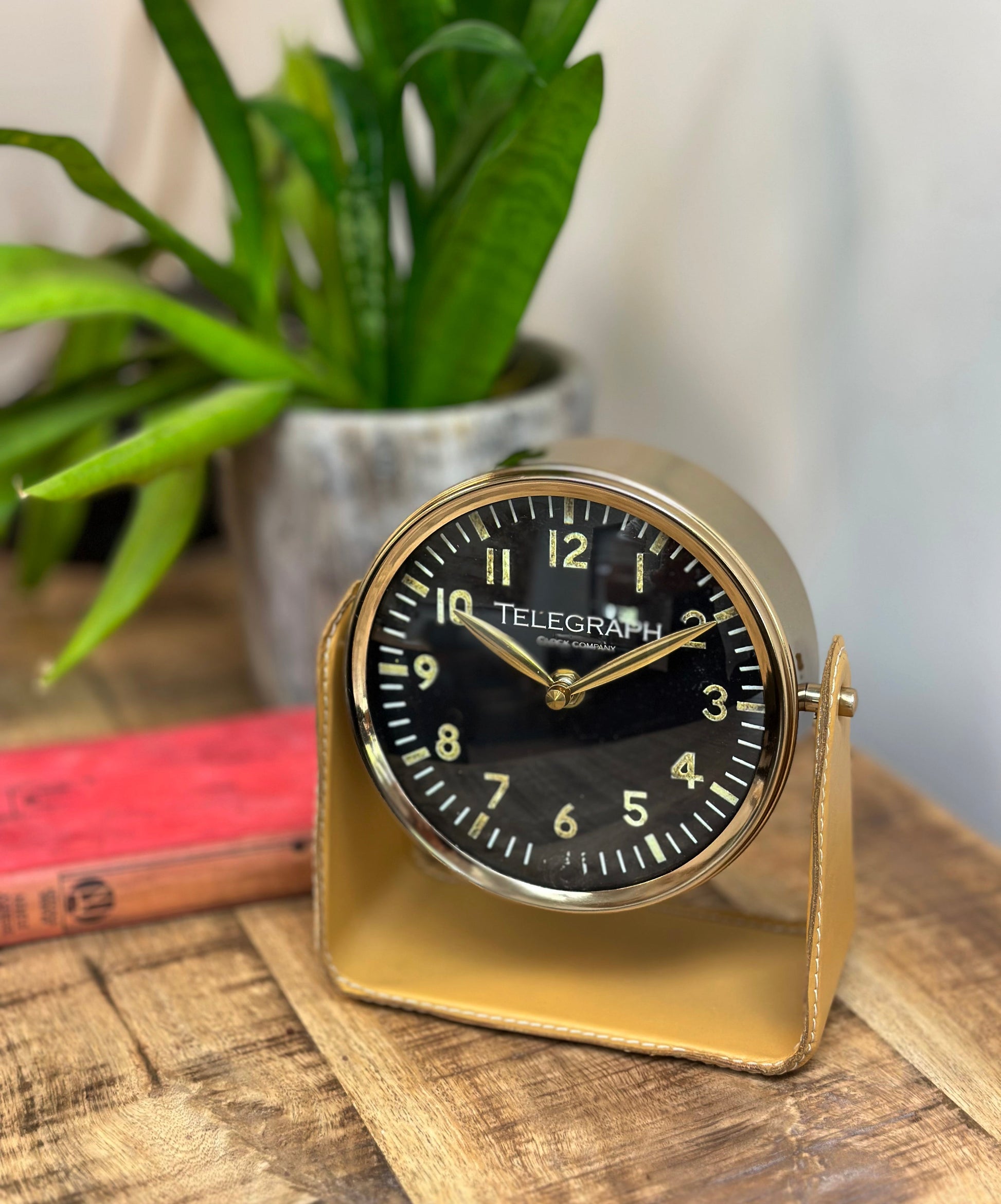 Table Clock, 6" Face, Matt Antq Brass/Tan Leather, India