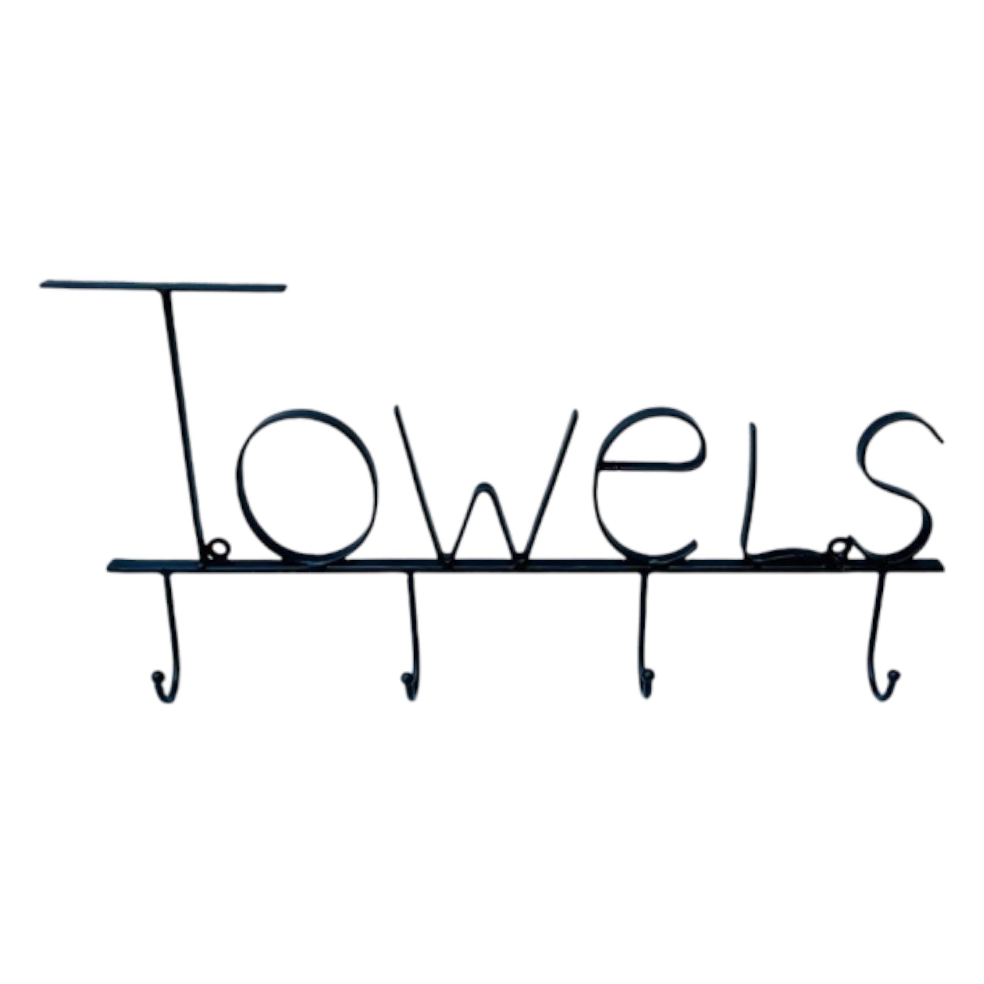 Towels Metal 4 Hooks Rack, Iron, Black Matt