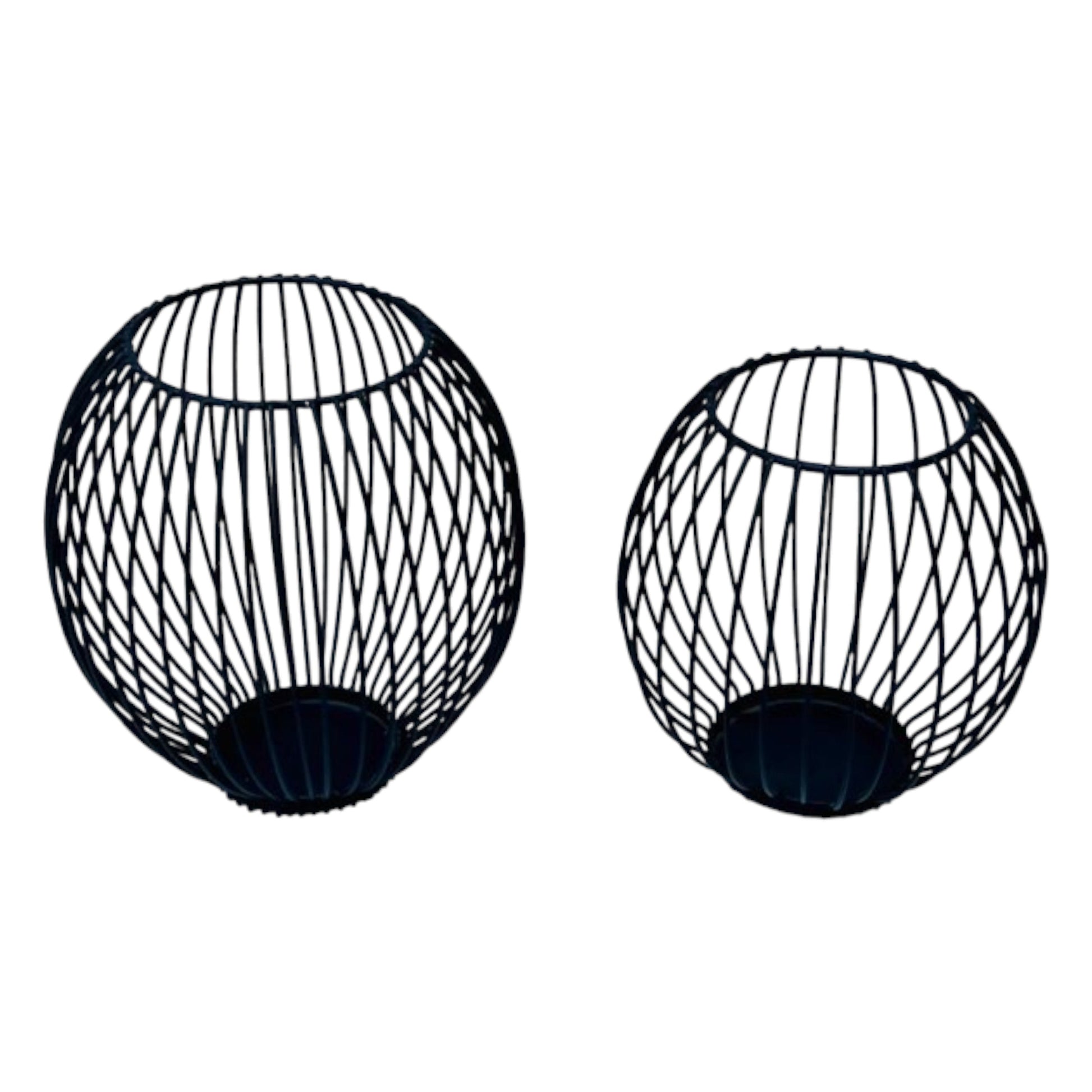 Wire Cage Candle Holders, Set of 2, Iron, Black Matt, S: 6x6x6; L: 7x7x7 in