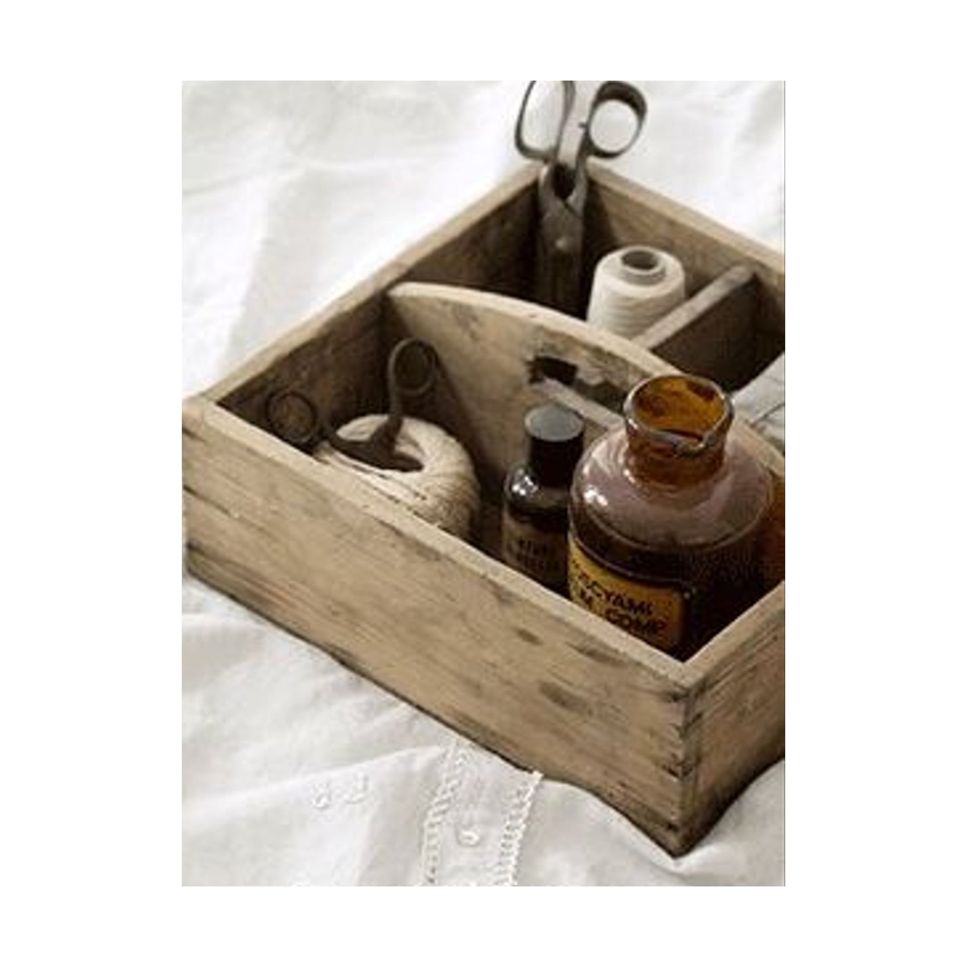 Wooden Square Brickmould With Handle With Partition, White Wash, India