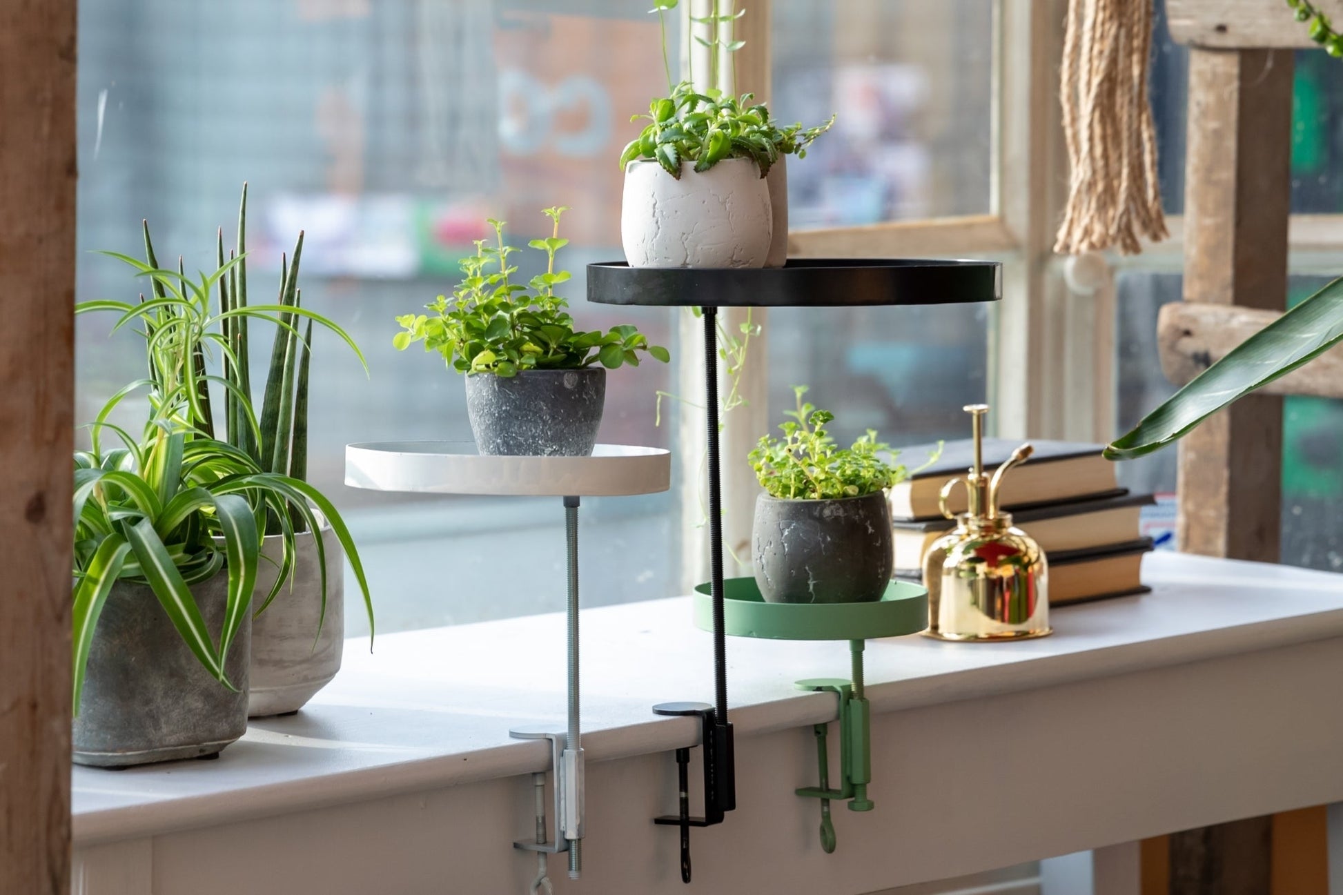 With these clamp trays the window sill or table will be enlarged. The trays are adjustable in height and can be turned in different positions.- flatpack- packed in a gift box- enlarges the windowsill- the windowsill clamps are adjustable in height- easy to useWith these clamp trays the window sill or table will be enlarged. The trays7.1x7.1x9.5 in
