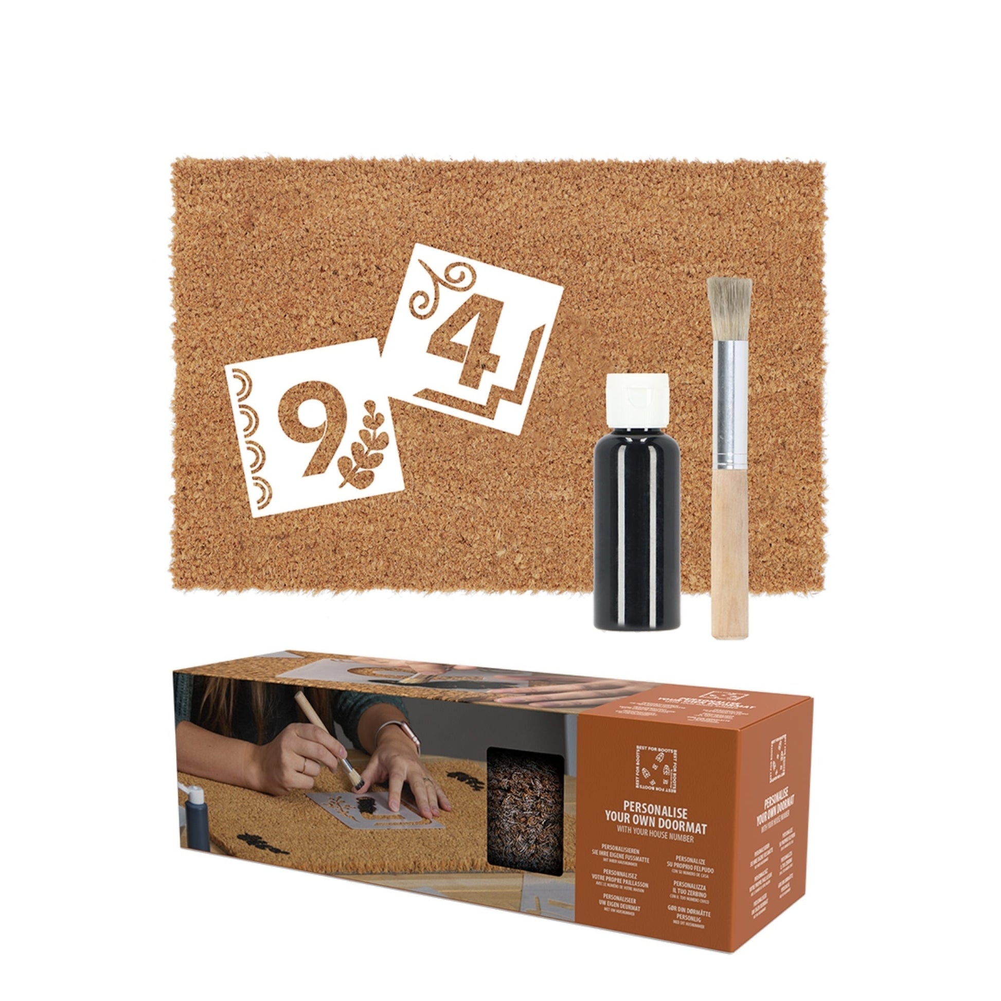 Nice doormats are available anywhere but is more fun to personalise it. This set contains of a doormat, several stencil sheets, a brush and doormat paint. Wit a little imagination and these materials, the most beautiful personalised doormats can be created!- with stencil sheets- including brush and paint- stimulates creativity