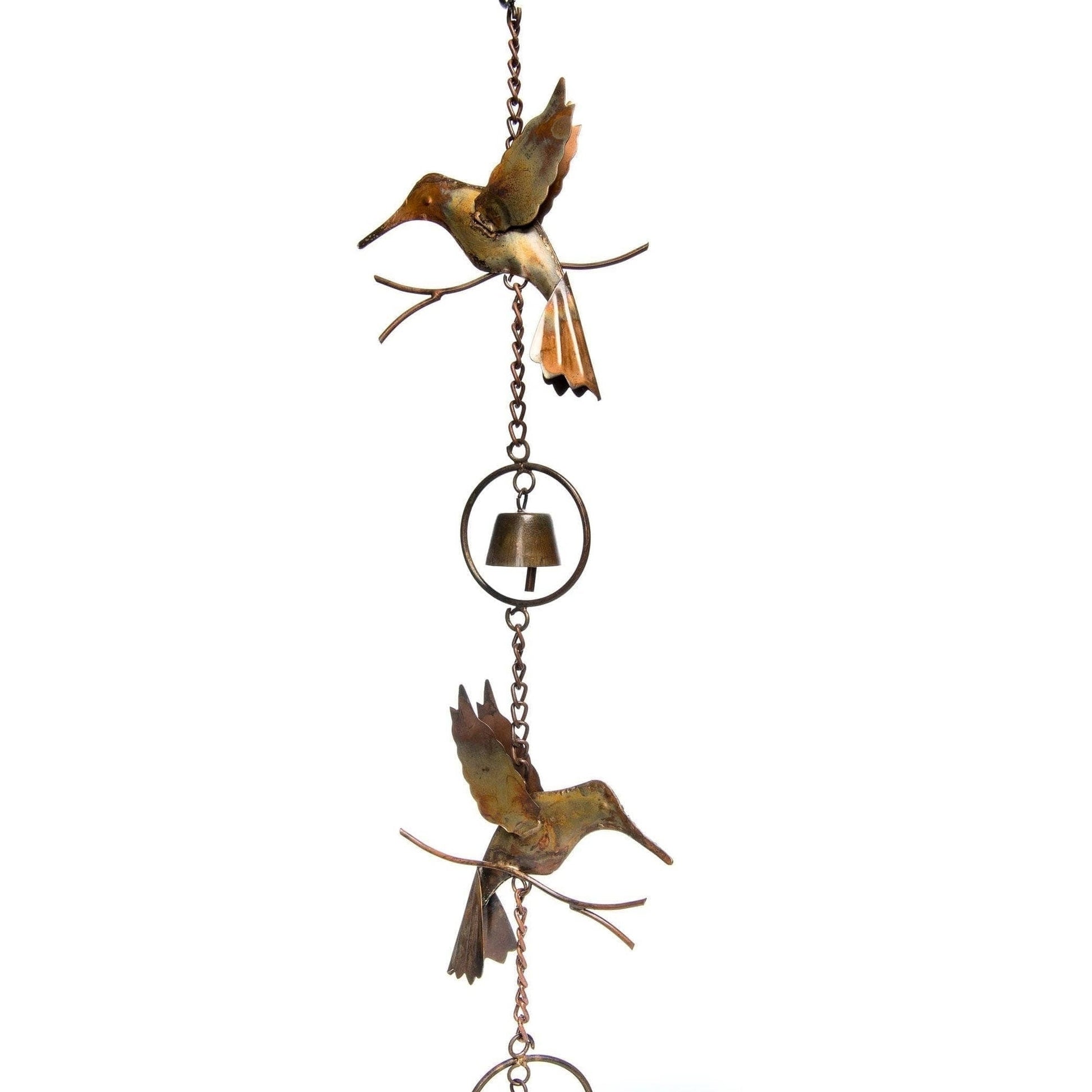 Flamed Hummingbirds and Bells Rain Chain, 4.5x98 in
