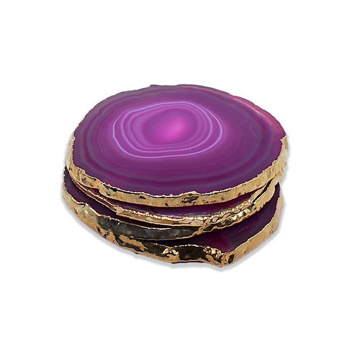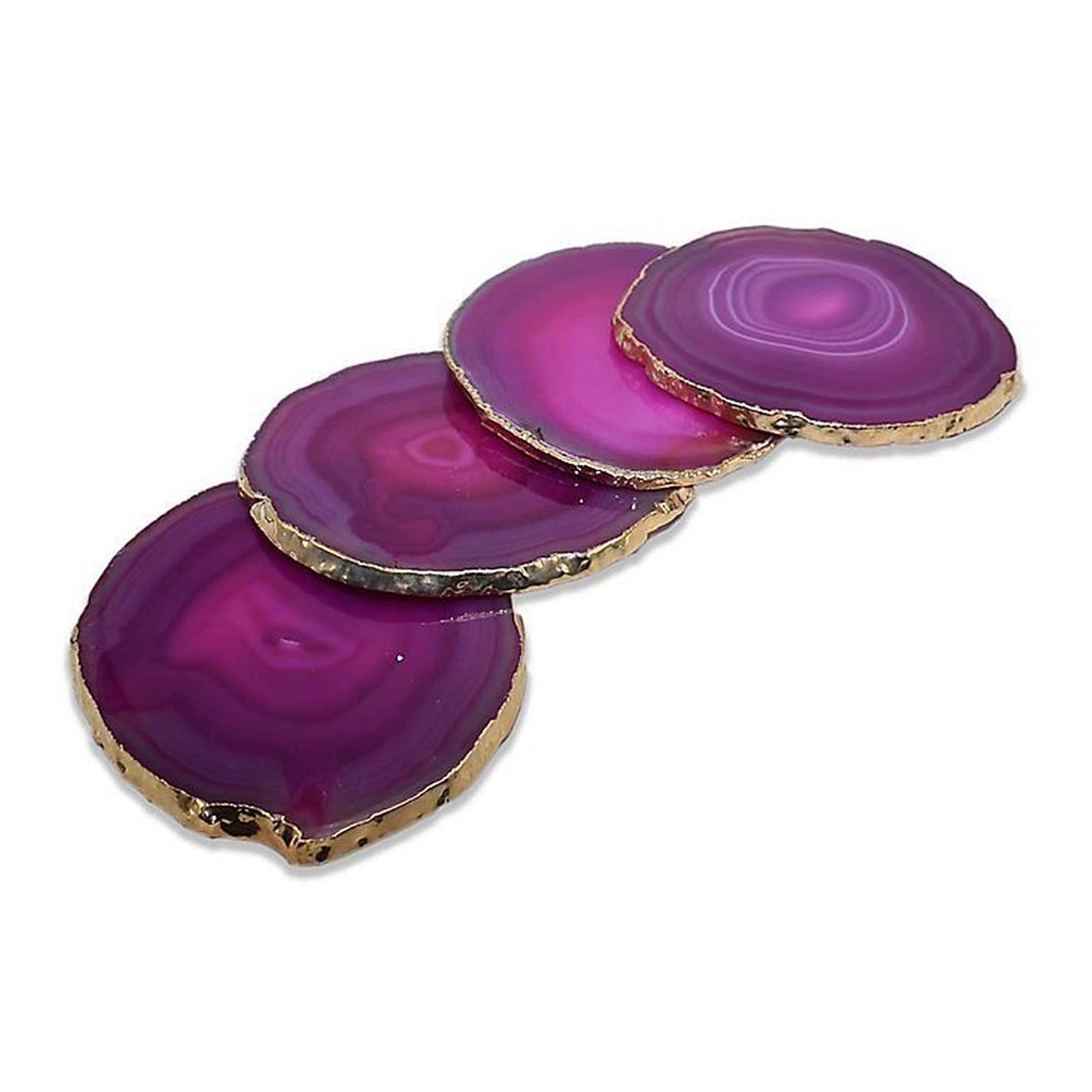 Pink Agate Coasters With Electroplated Gold Edges, 5 to 7mm, India, *Price Per Coaster*