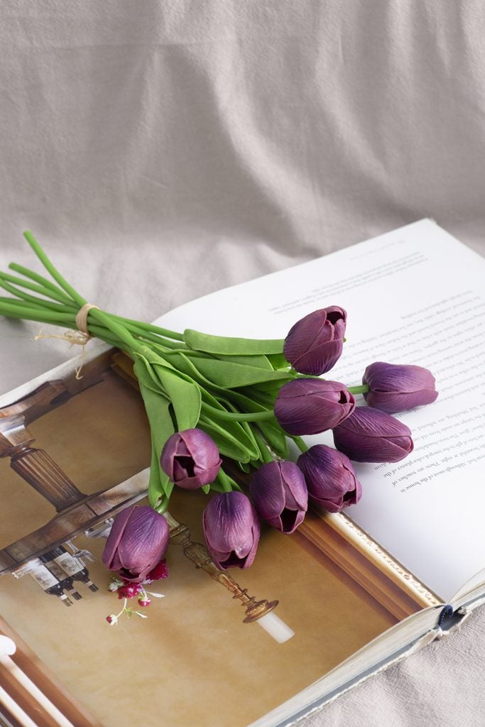 Artificial Tulip 9-Stem Bundle, Purple, 100% Pu
