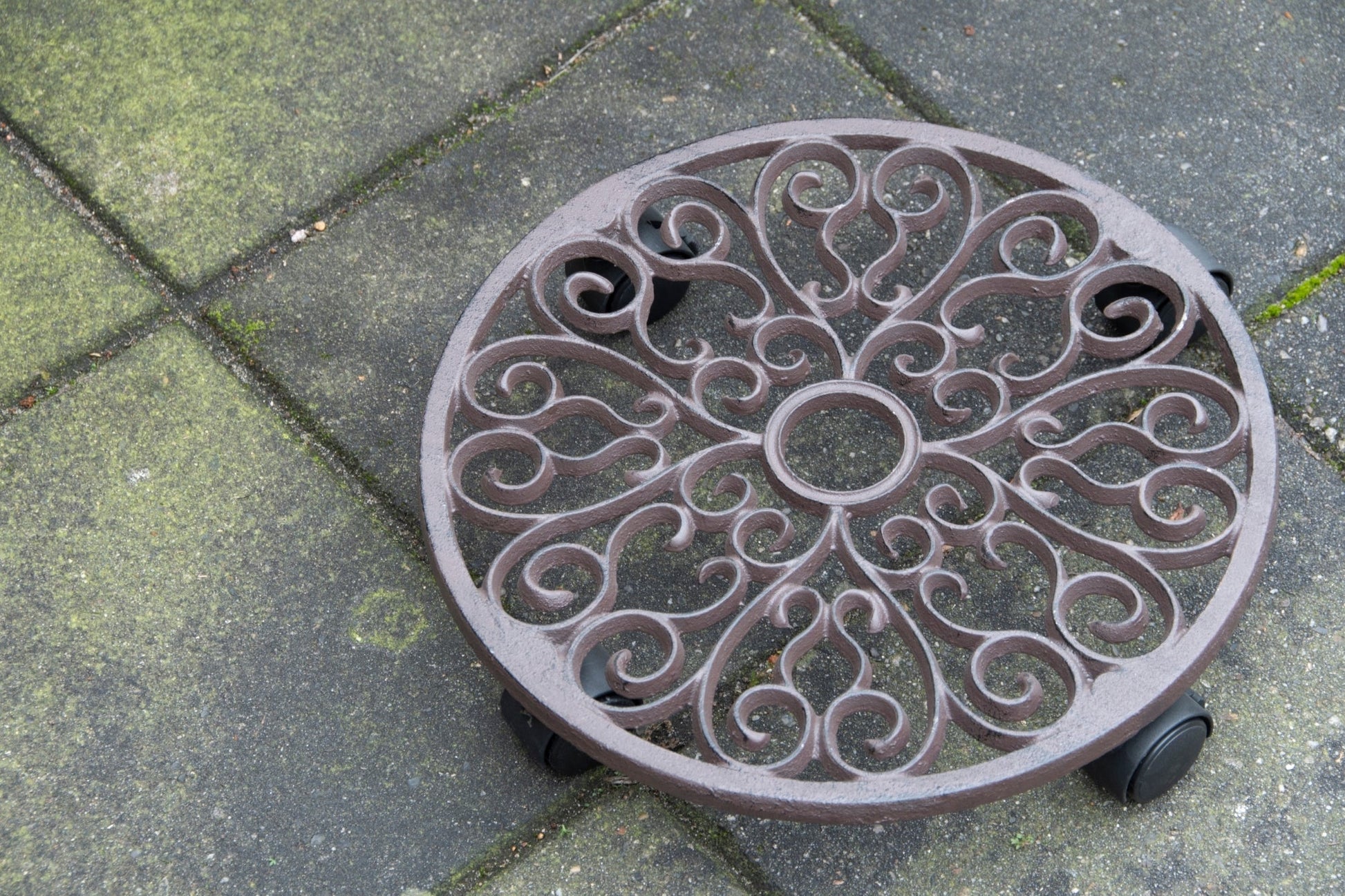 Cast iron large round plant trolley. Carrying capacity: up to 30 kg.Cast iron plant trolley round L, Cast iron, PP