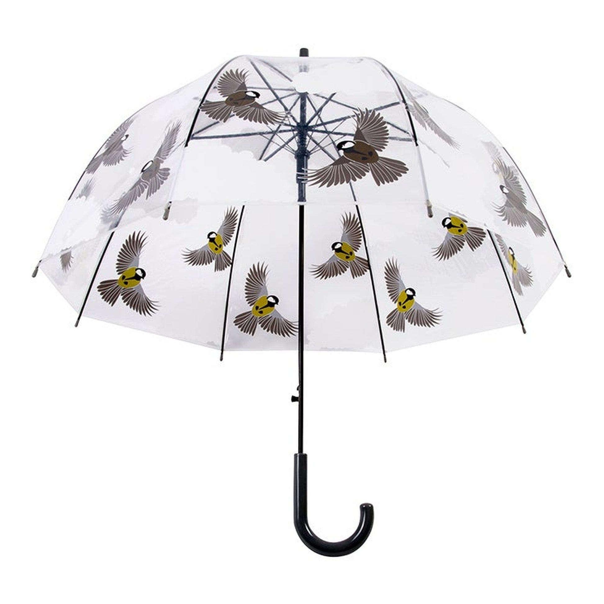 Transparent umbrella 2 sided birdsTransparent umbrella 2 sided birds, POE, PE, steel, UV protection