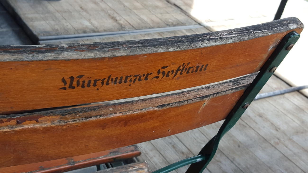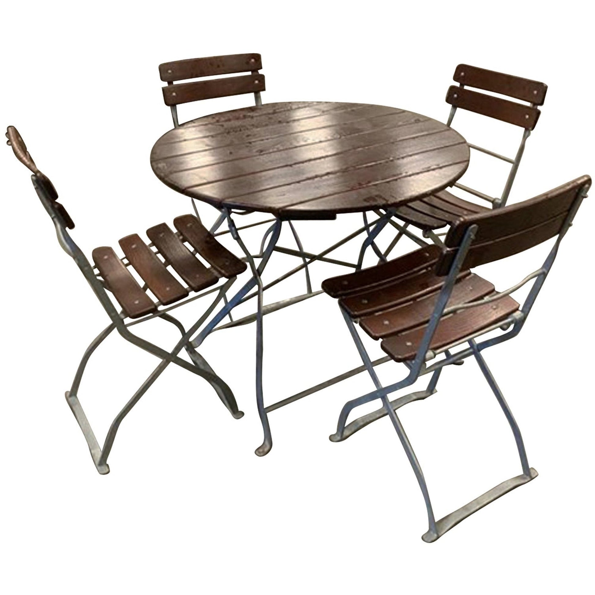 Antique French 1880 Large Bisro Set 1 table 4 chairs Beer Company branding, Round table size: 39.5Dx29.5H., France 1870,
