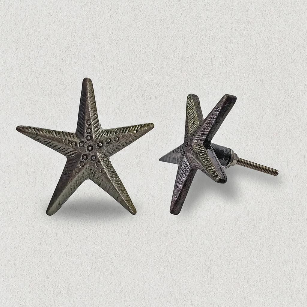 Bring a taste of the seaside to your home decor with this cast iron Starfish Cabinet Knob. Crafted with high-grade iron, this 2.35x2.35x1.2 inch knob will transform any door, drawer, or furniture into a unique, nautical style.