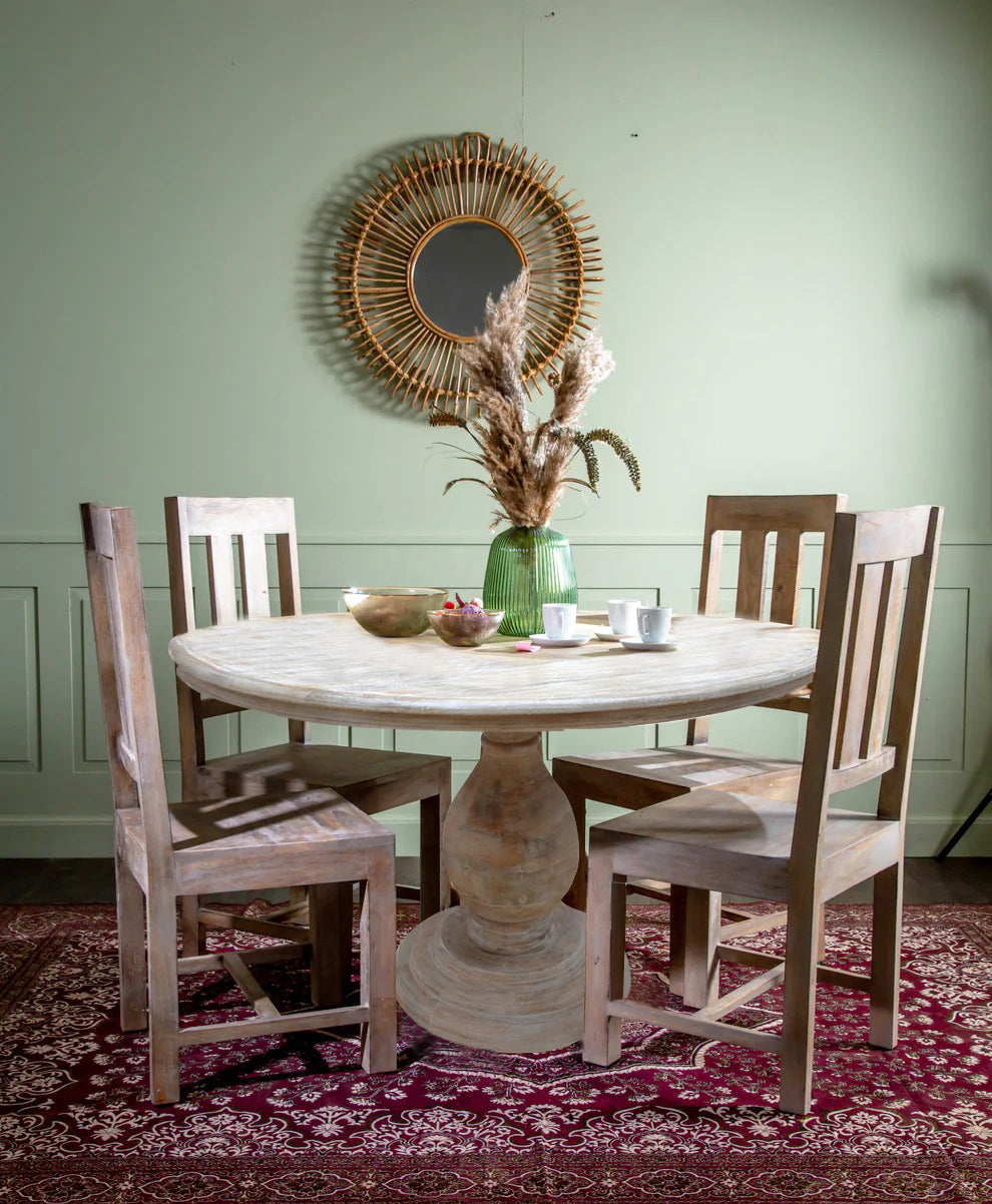 Wooden Pedestal Dining Table, Dia 48", Washed White, India
