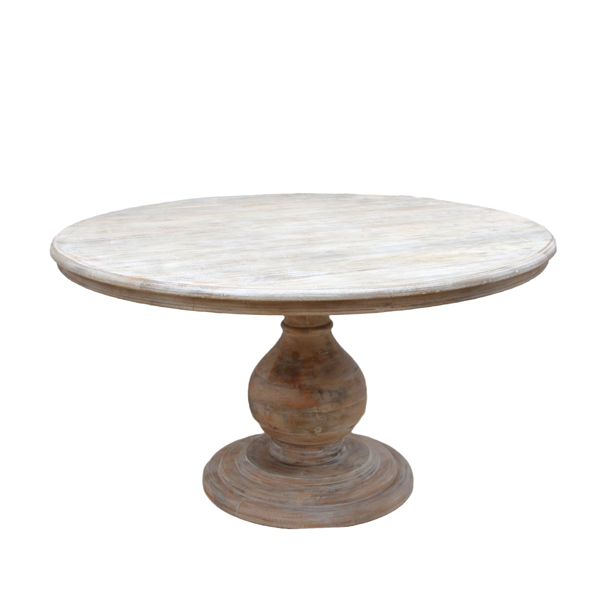 Wooden Pedestal Dining Table, Dia 48", White Washed