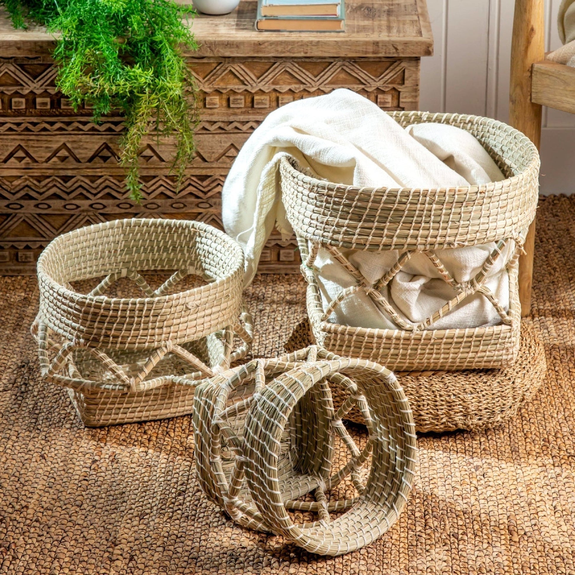 Laila Basket, Set of 3, Seagrass, 14.6/10.7x10.7x11.9; 11.9/7.9x7.9x10.3; 9.1/6x6x9.1 in, India