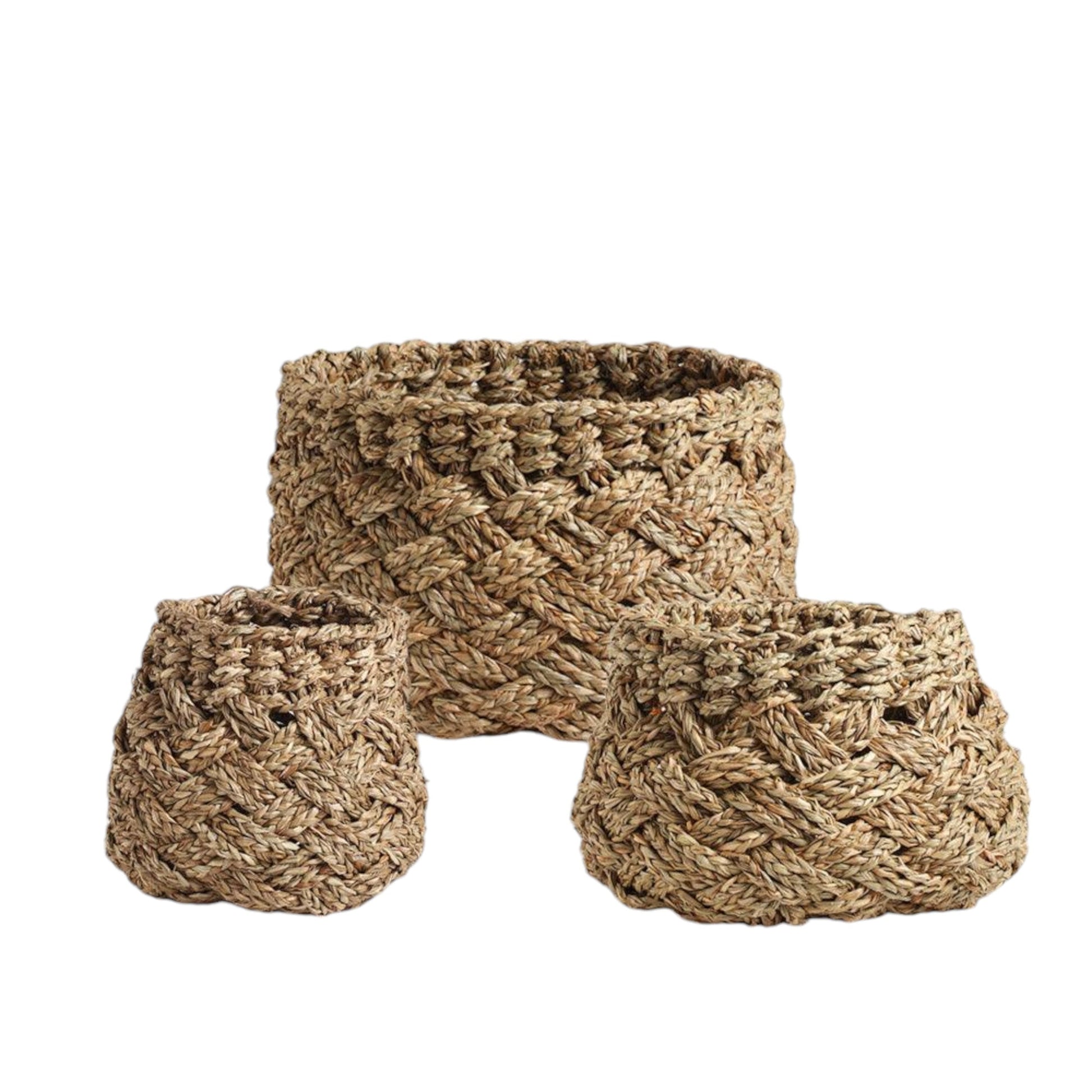 Victoria Studio Basket, Seagrass; L: 11.9/15x12.6x11.1: M: 7.9/11.1x8.7x9.9; S: 4/7.1x4.8x8.7 in, India, India